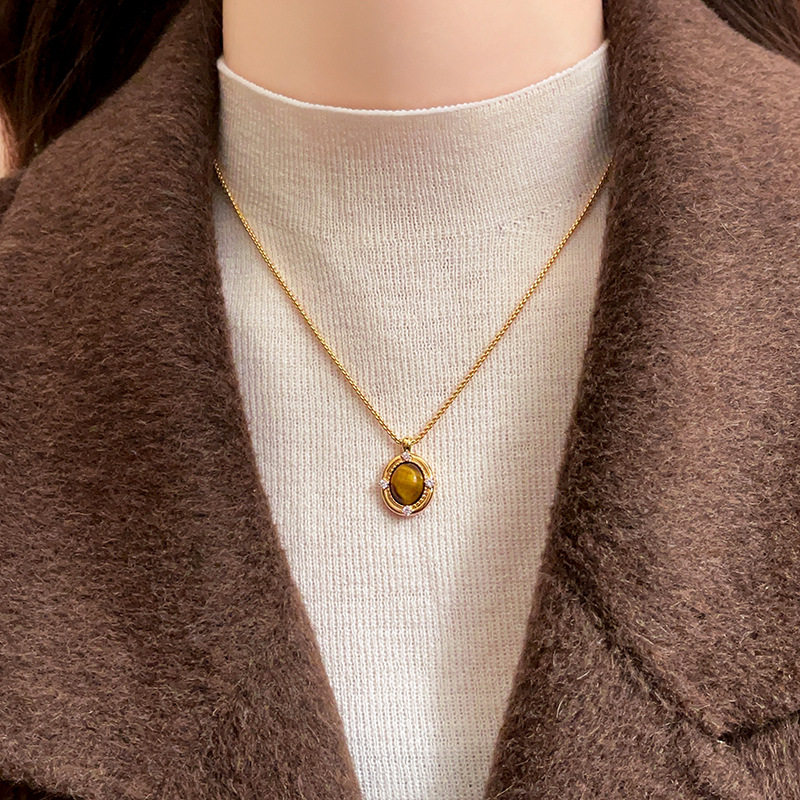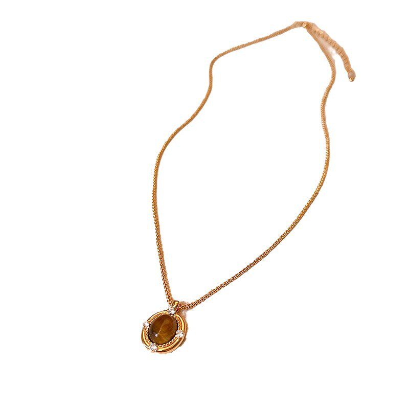 2026年新款虎眼石吊坠美拉德项链配饰女复古毛衣链轻奢高级感颈链