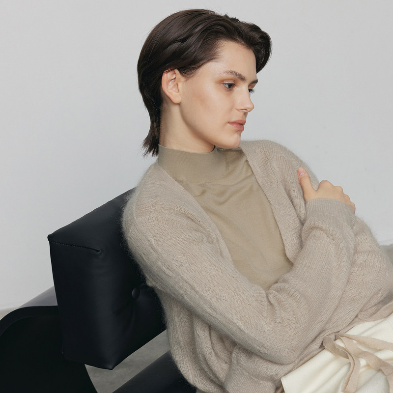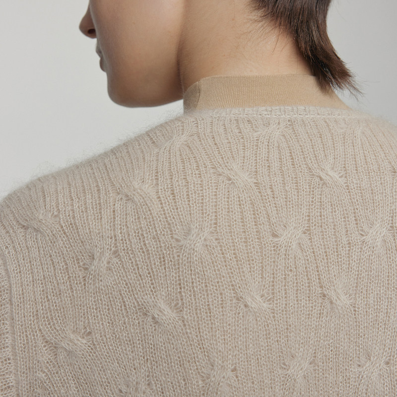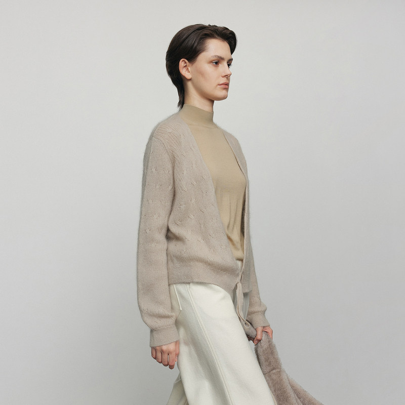 LESS秋季马海毛针织衫女简约宽松通勤V领长袖开衫2M8311770