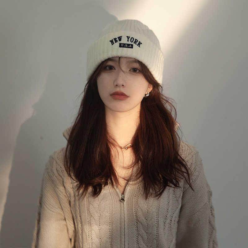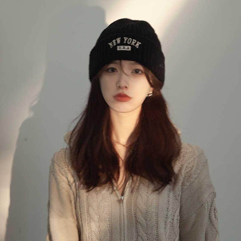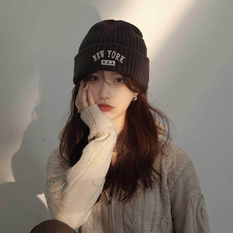 2024秋冬新款韩国字母刺绣针织帽女保暖百搭情侣毛线帽护耳冷帽男