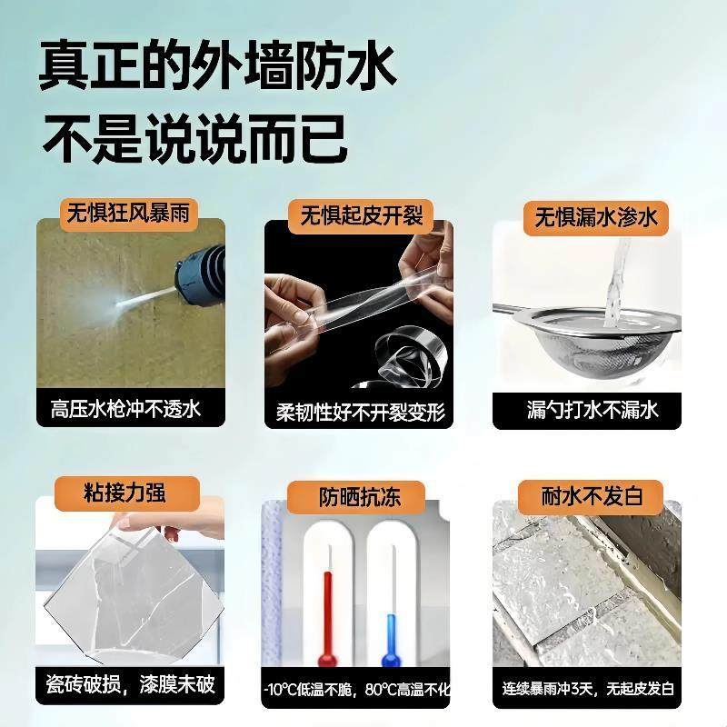 补漏防水胶裂缝渗水透明外墙室外卫生间耐高温免砸砖防水涂料