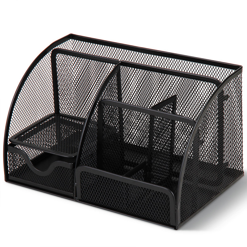 得力金属网格笔筒组合办公用品桌面收纳笔插文具整理盒多功能笔座大容量小清新时尚可爱创意收纳网纹网状新低