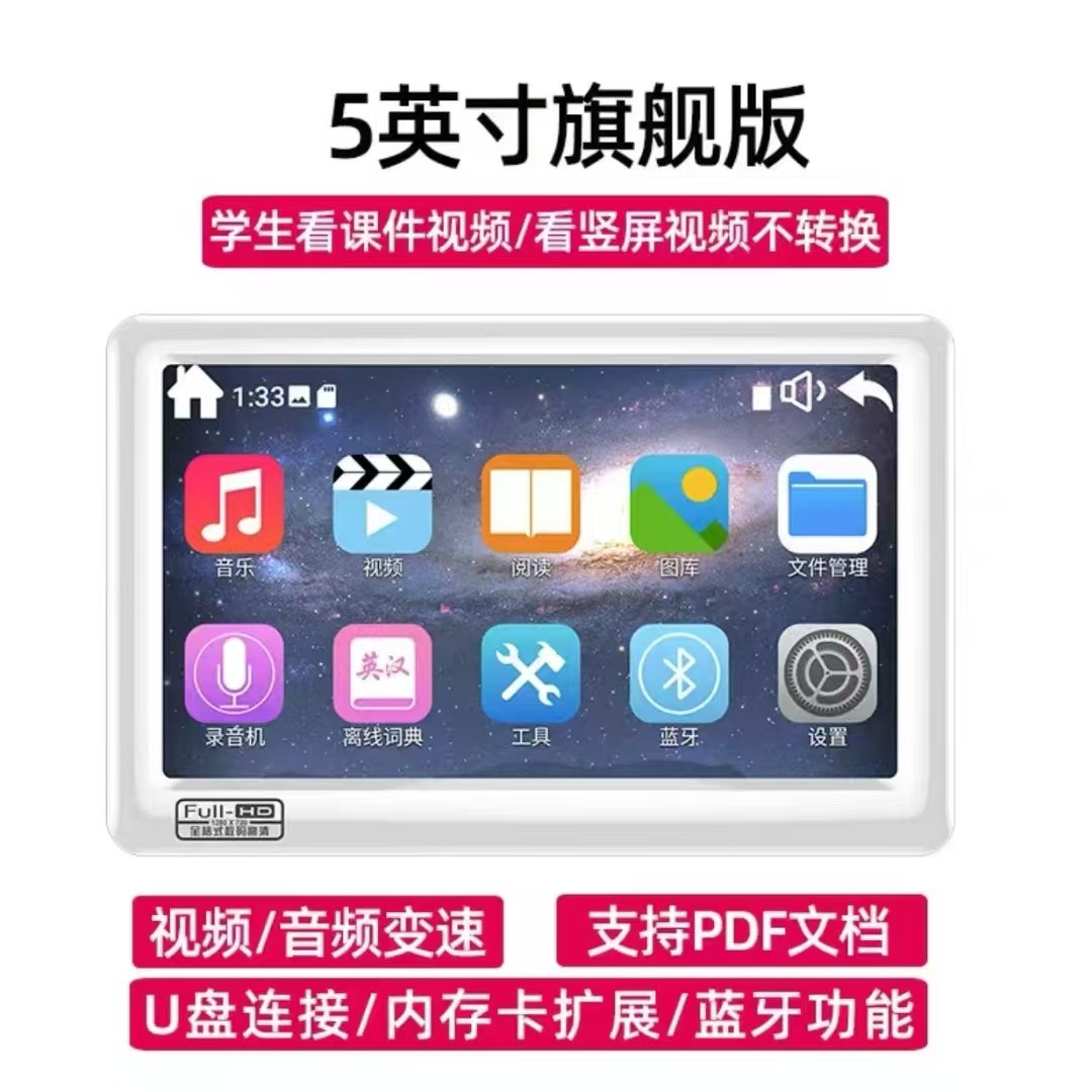 5英寸MP5播放器可接U盘mp4全面屏蓝牙MP3随身听学生MP6插卡看小说
