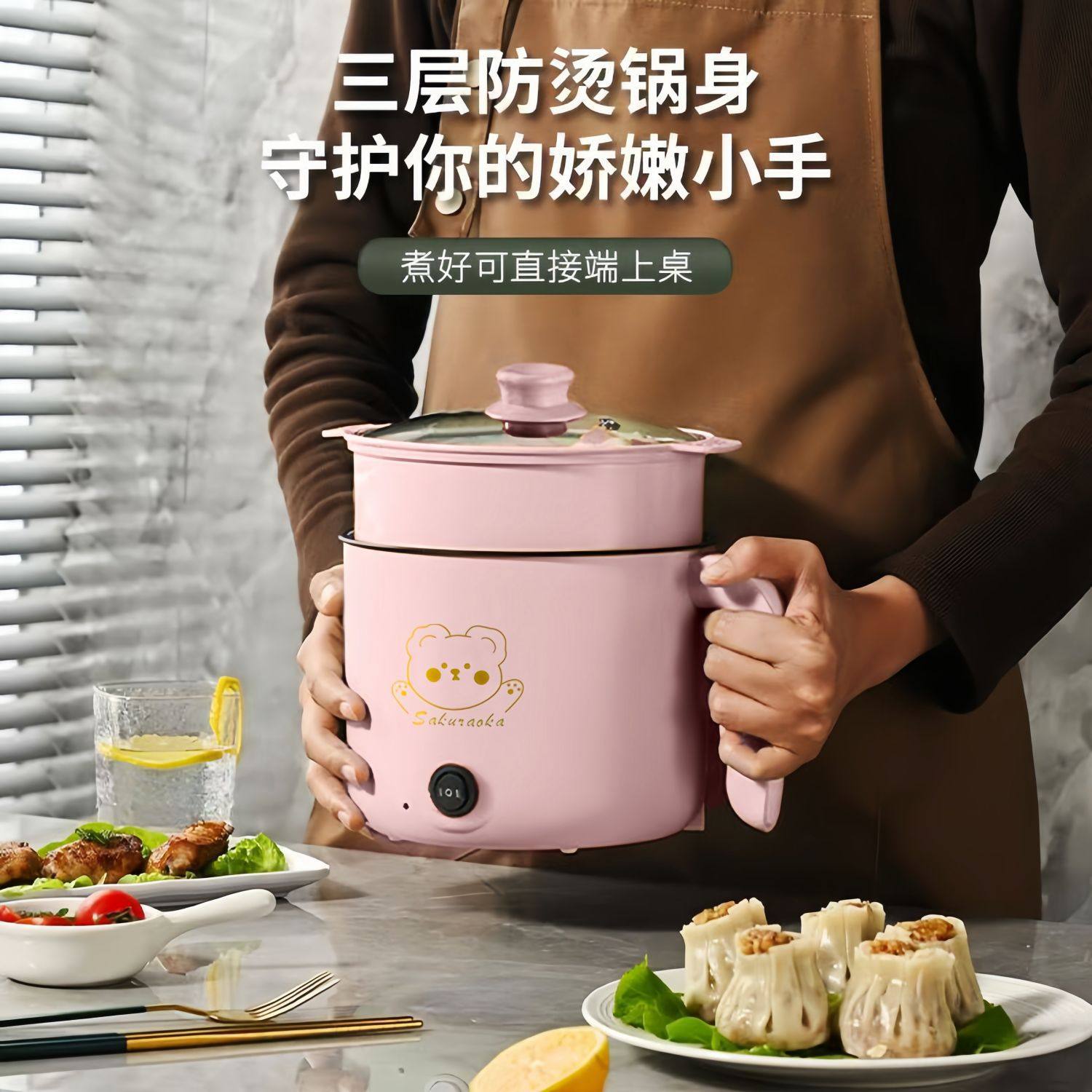 蒸煮小电煮锅学生煮面锅不粘锅电火锅电饭锅不锈钢连体宿舍结构
