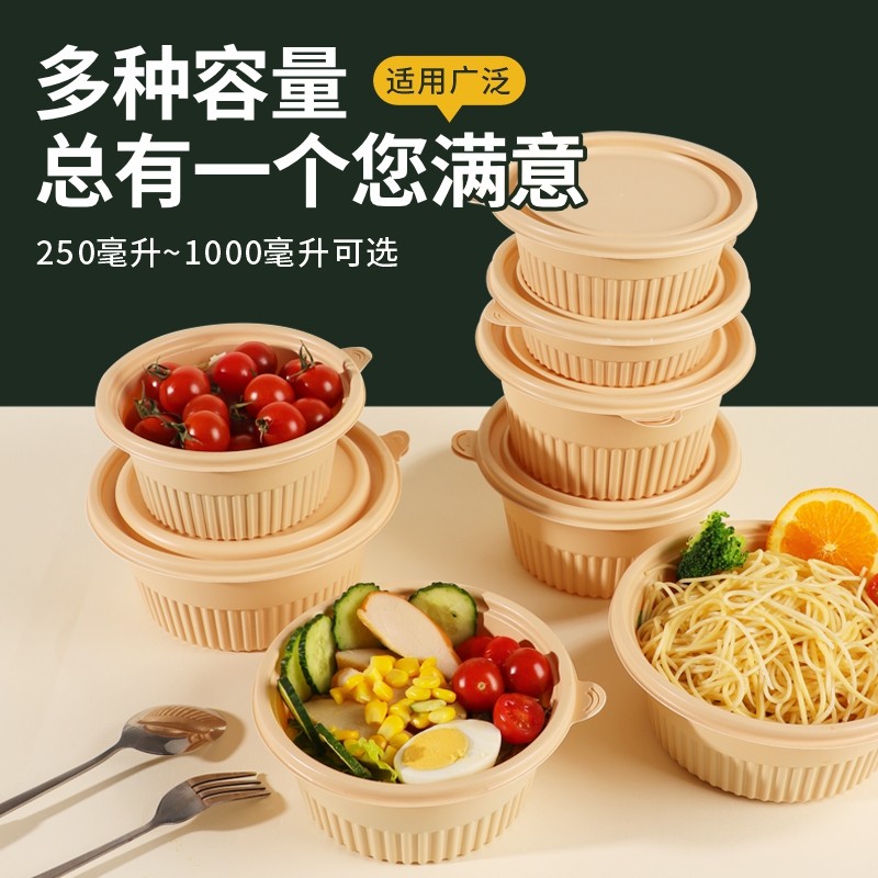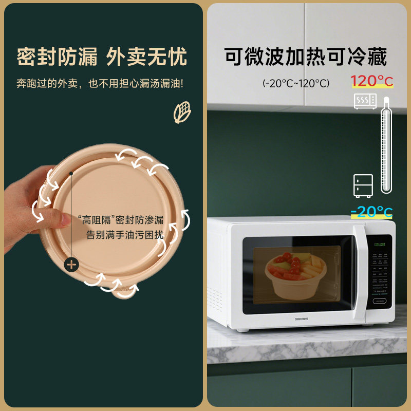 可降解一次性饭盒加厚食品级可微波圆碗带盖玉米淀粉外卖打包餐盒