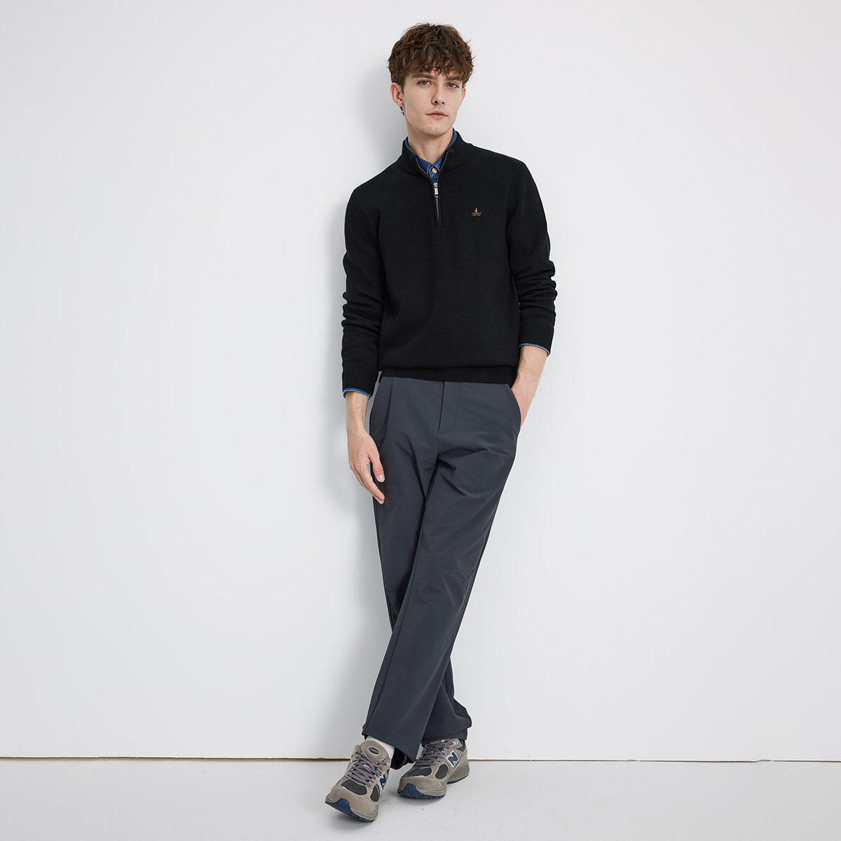 Navigare意大利小帆船半开领针织衫男士秋冬新款通勤加绒毛衣