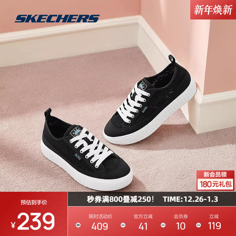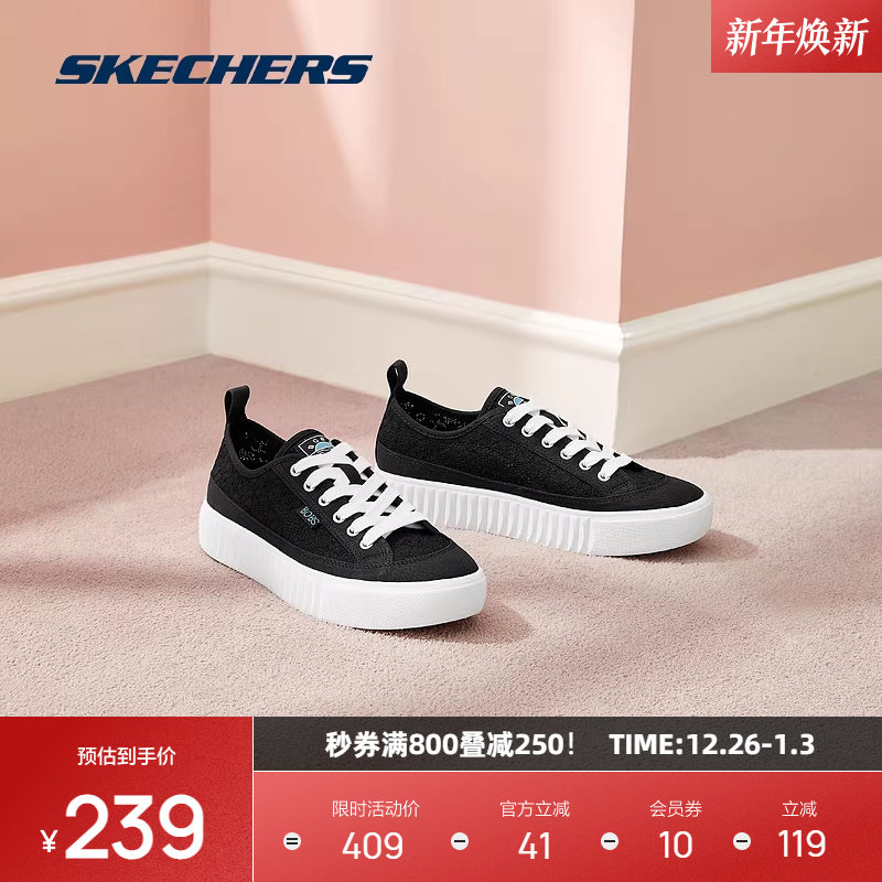 斯凯奇板鞋厚底帆布鞋透气时尚简约百搭休闲鞋小白鞋子舒适轻便