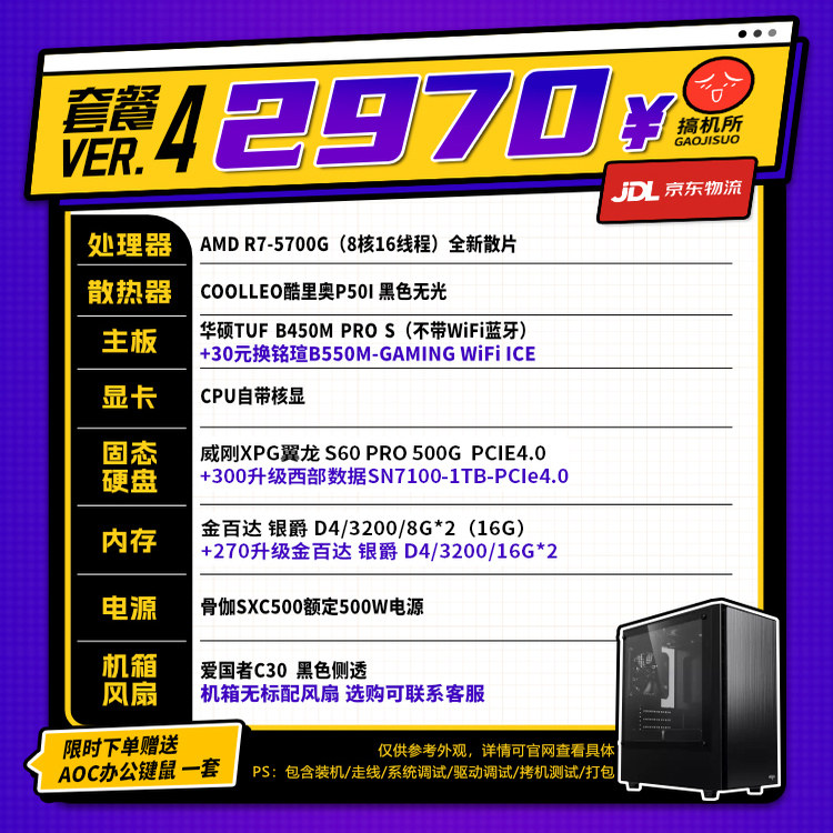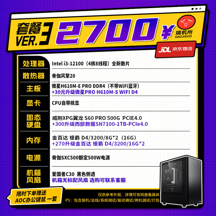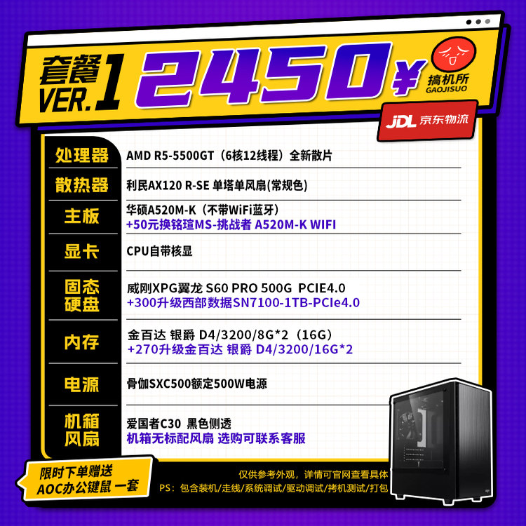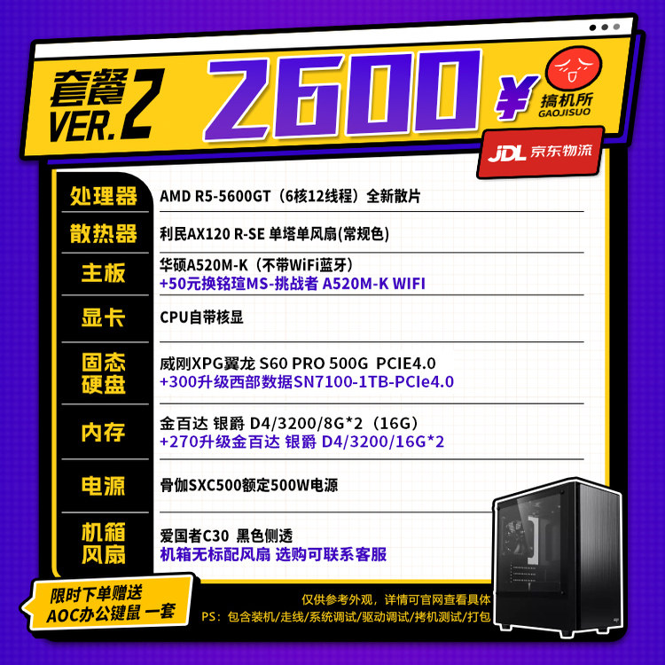 搞机所 1月特惠 R5 5600GT/i5-12400 商务 台式 办公 核显 主机