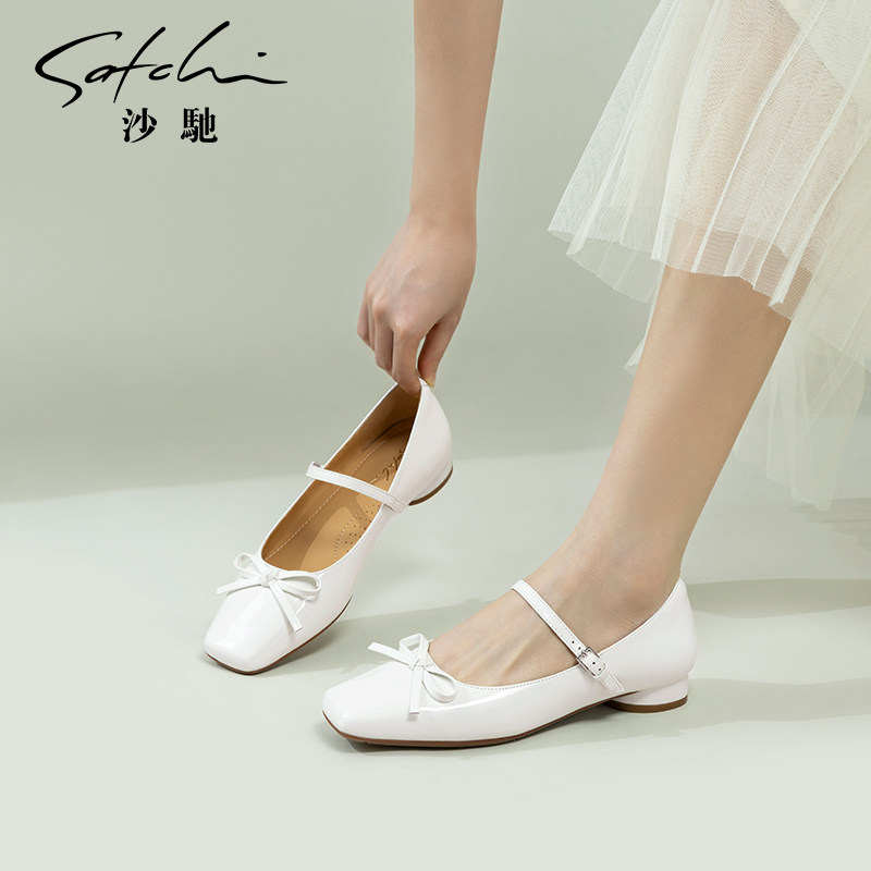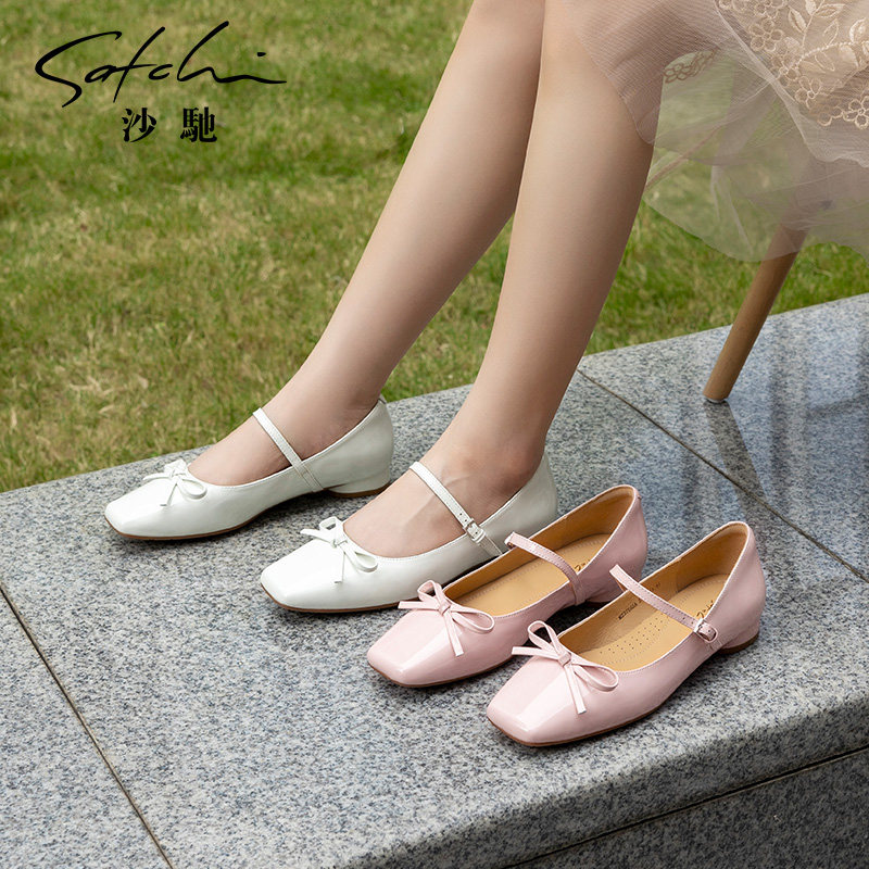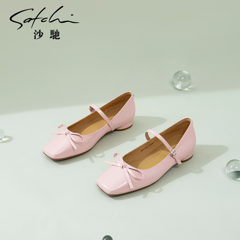 沙驰女鞋粉色甜美玛丽珍鞋女25年春新款低跟单鞋法式晚晚鞋搭裙子