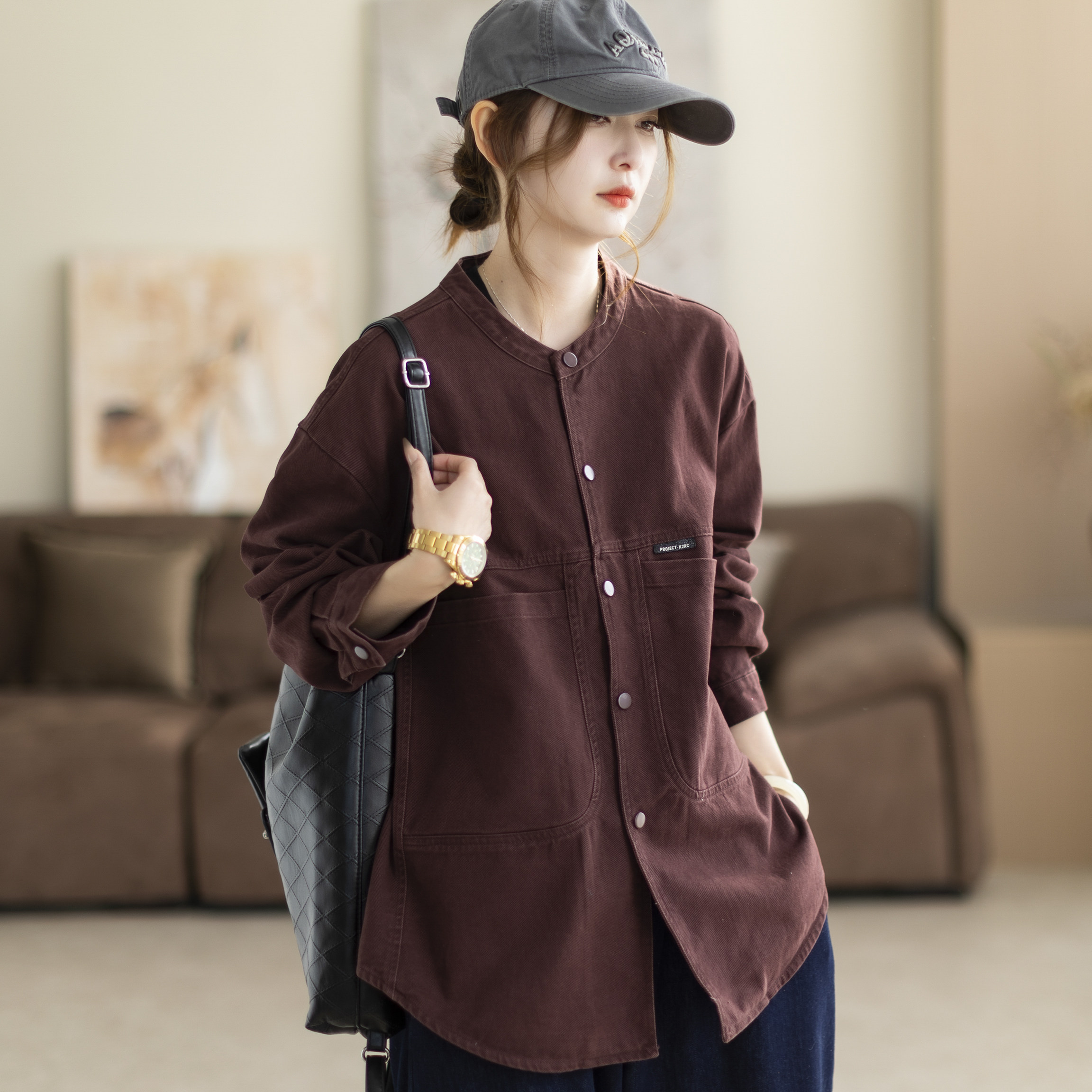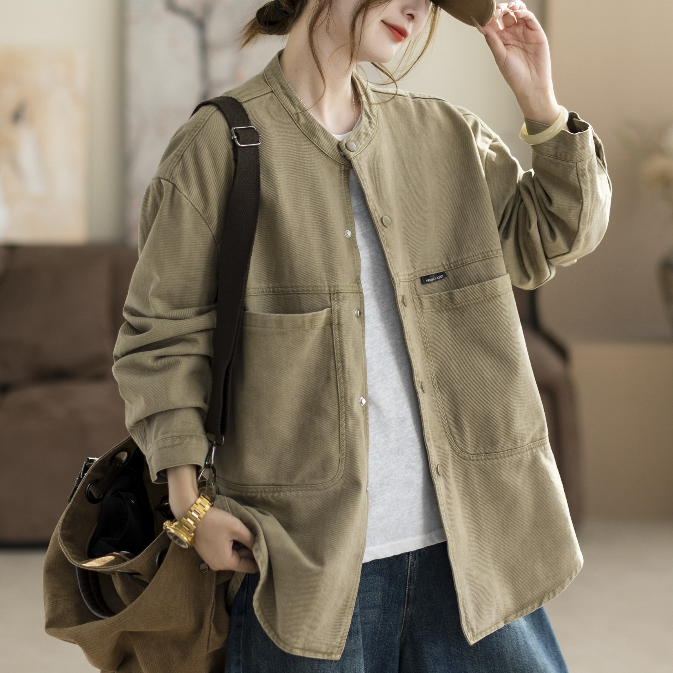 咖咪羽外套女2026新款春秋圆领休闲宽松拼接通勤纯色流行女装上衣