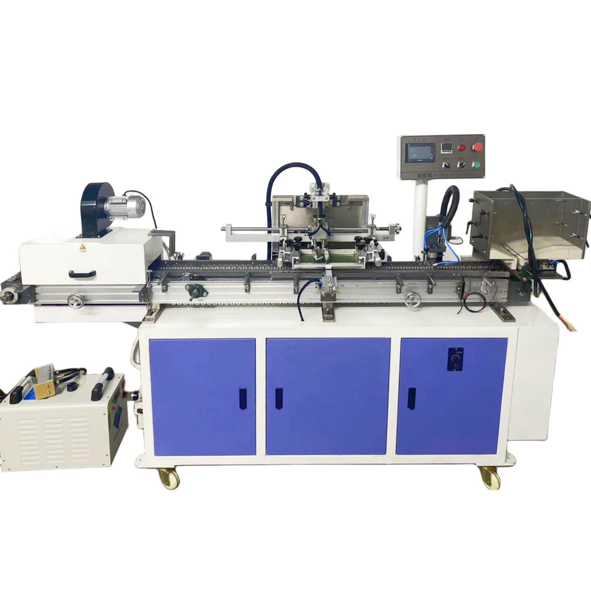 厂家全自动圆珠笔眉笔单色丝印机自动上下料带UV烘箱唇膏膏自动掉