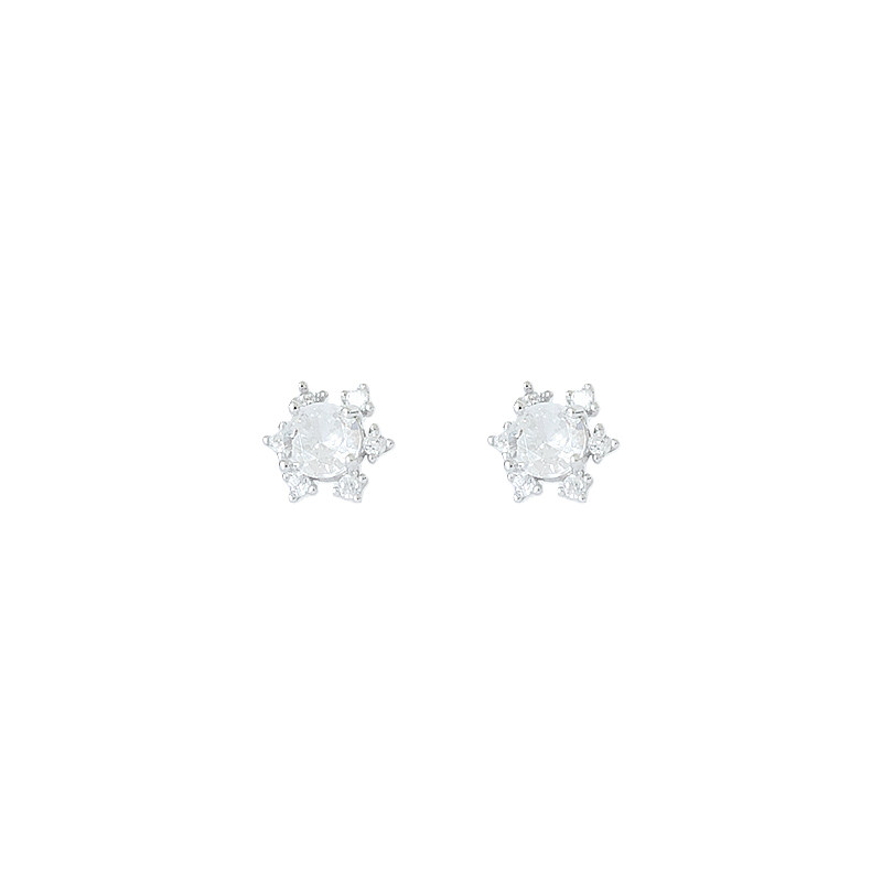 999纯银耳钉女养耳洞耳骨钉小众高级感锆石耳蜗钉水钻耳环银耳饰