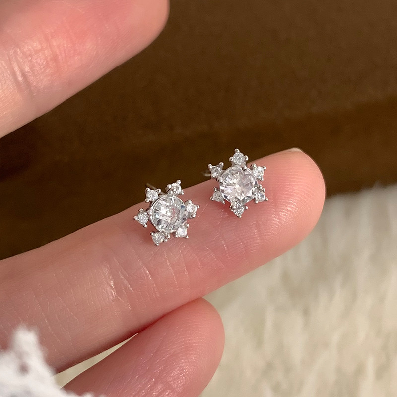 S999纯银雪花耳钉女2025新款爆款耳环轻奢高级感耳饰品足银防过敏