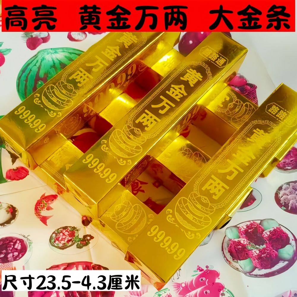 金条金砖摆件加厚聚宝盆高亮黄金万两祈福纸祭清明中元节用品钱纸