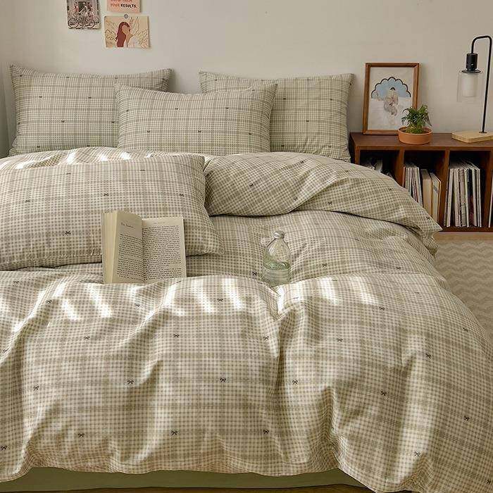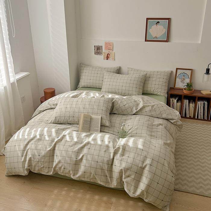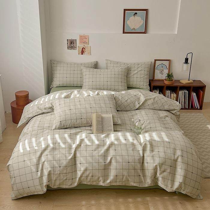 新款全棉40支四件套纯棉四件套简约格子风纯棉套件纯棉被套可水洗
