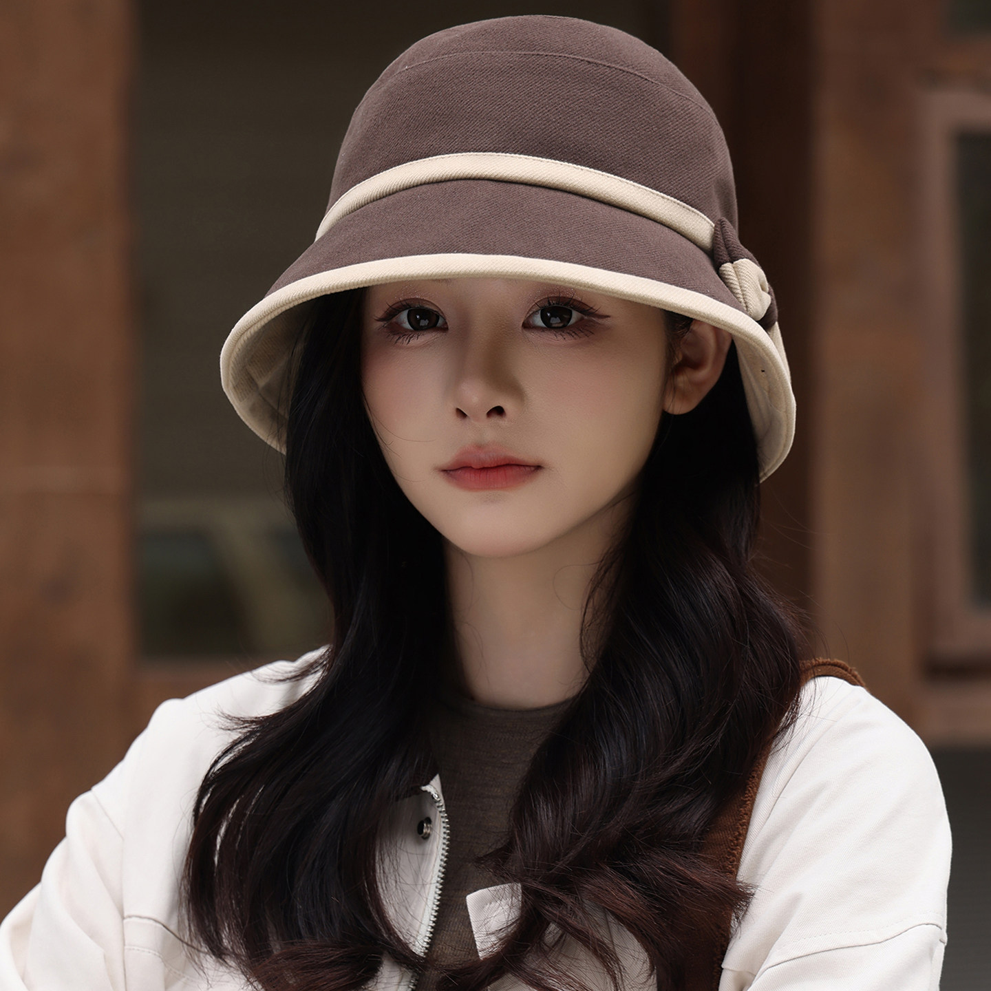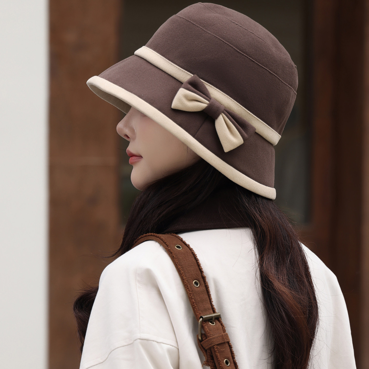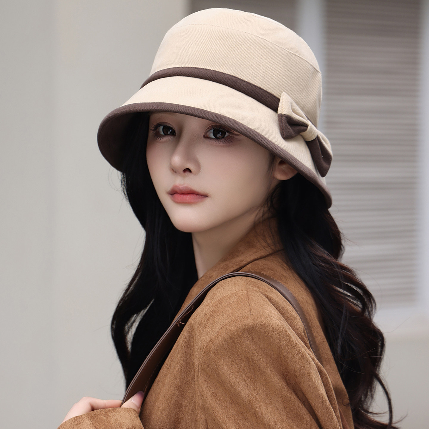 渔夫帽子女秋冬季英伦复古蝴蝶结盆帽时尚百搭保暖显脸小黑色咖色