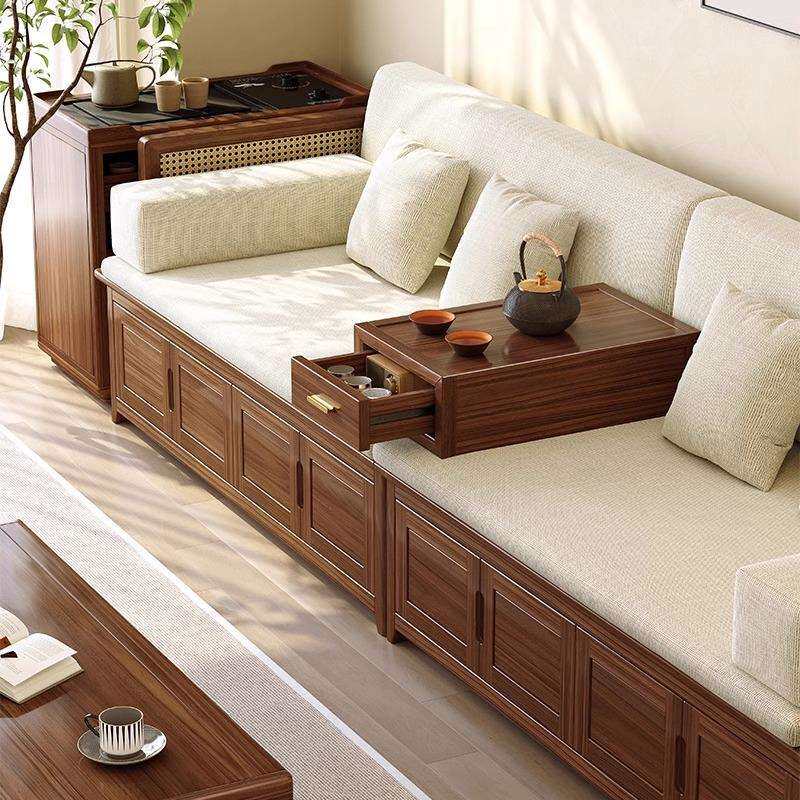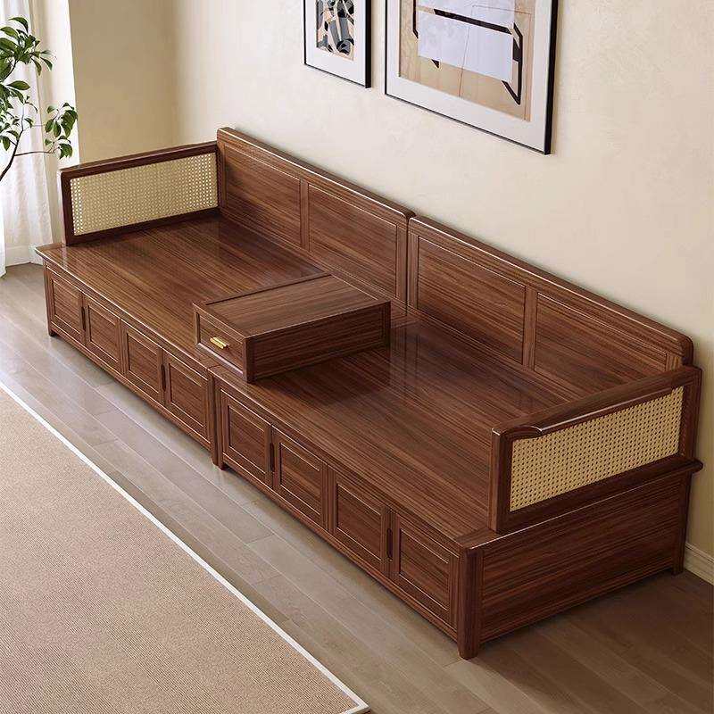 黑胡桃木罗汉床实木沙发床榻储物箱体新中式仿古禅意简约客厅家具