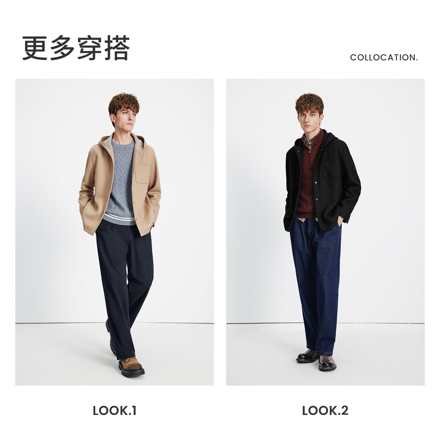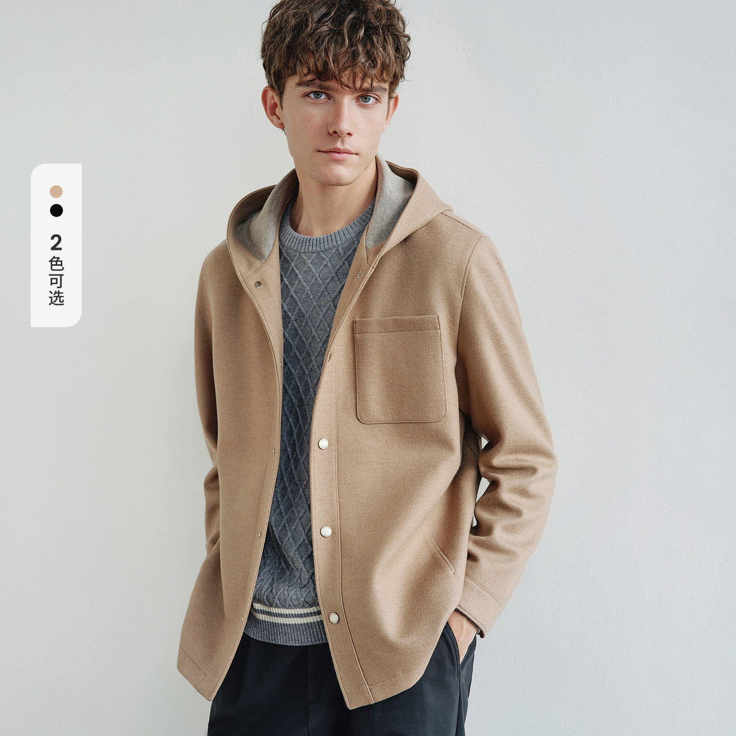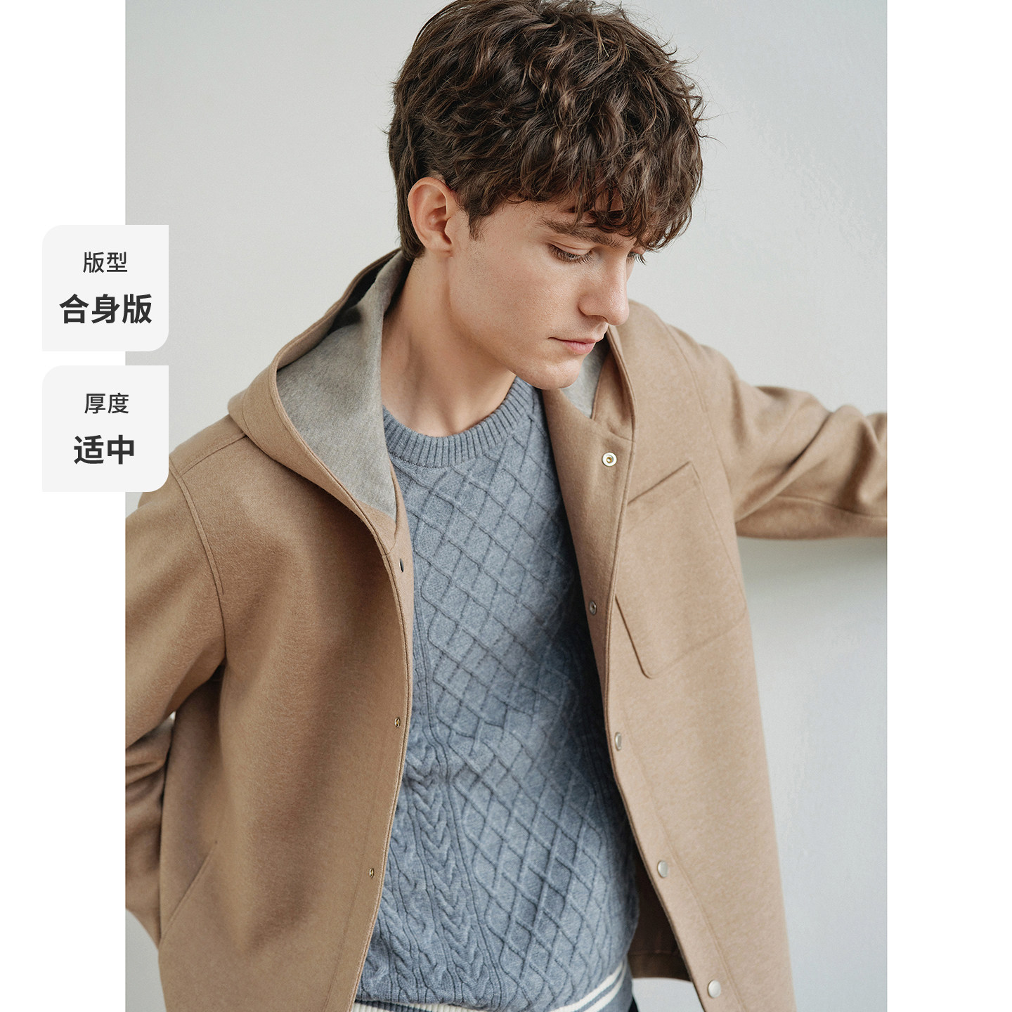 Navigare意大利小帆船老钱风羊毛夹克男25秋冬新款连帽羊毛呢外套