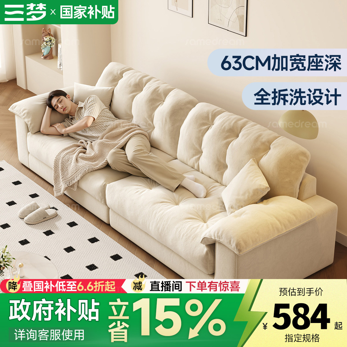 奶油风布艺沙发客厅2025新款小户型家用可拆洗三人位直排云朵沙发