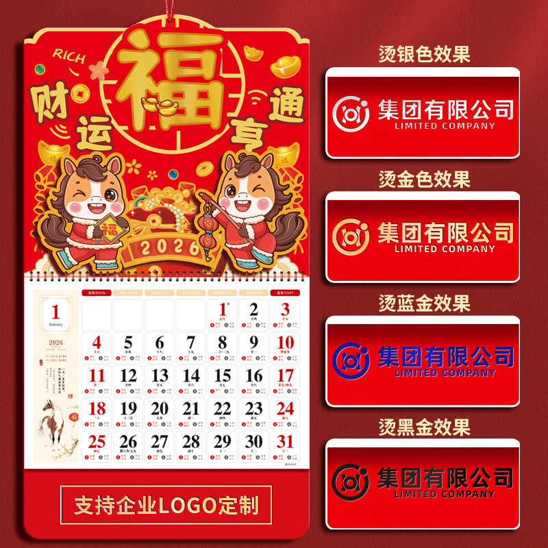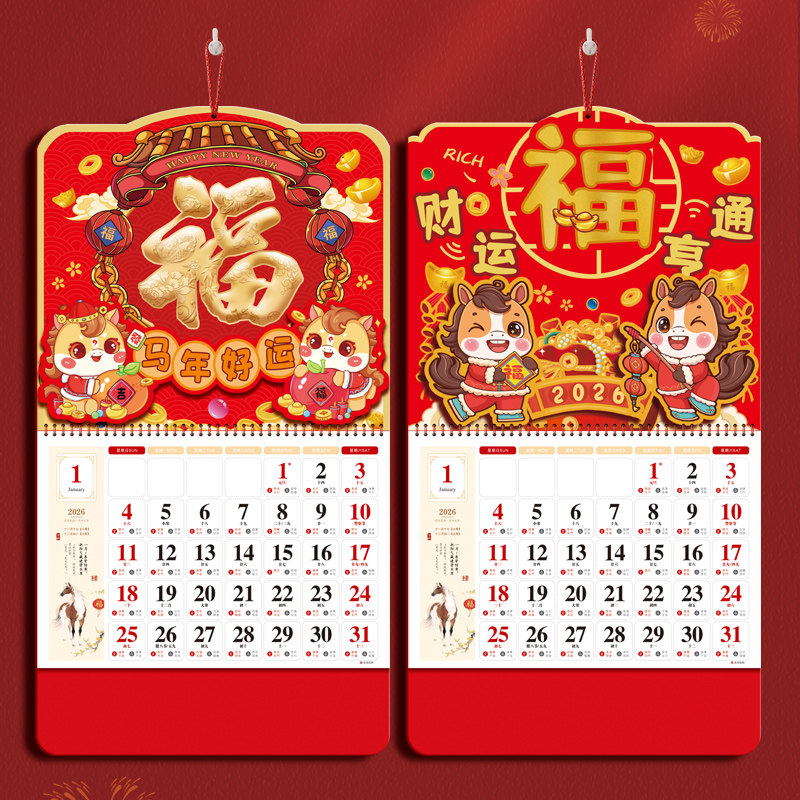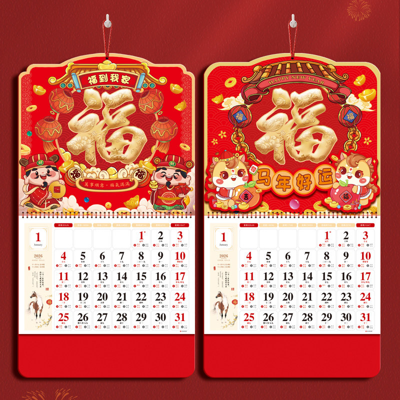 定制福字挂历2026年新款黄历挂式日历月历订制公司企业广告金箔马年福字福牌手撕定制定做家用挂墙老式撕历