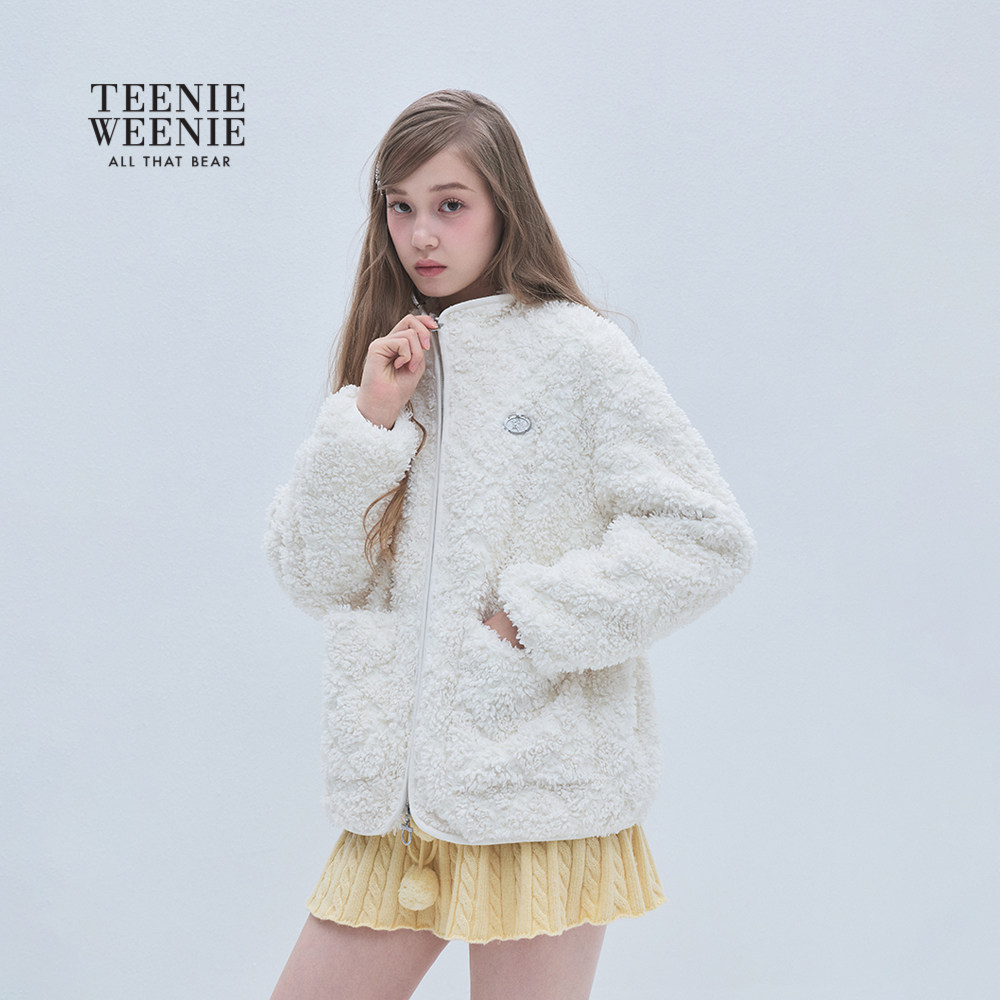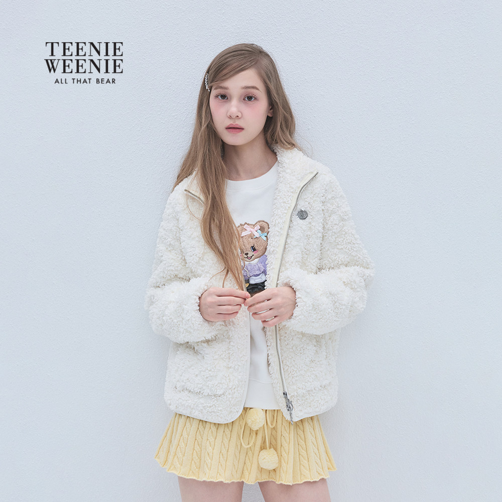 TEENIEWEENIE bearnova25冬新款女装甜酷风时髦短款仿羊羔毛外套