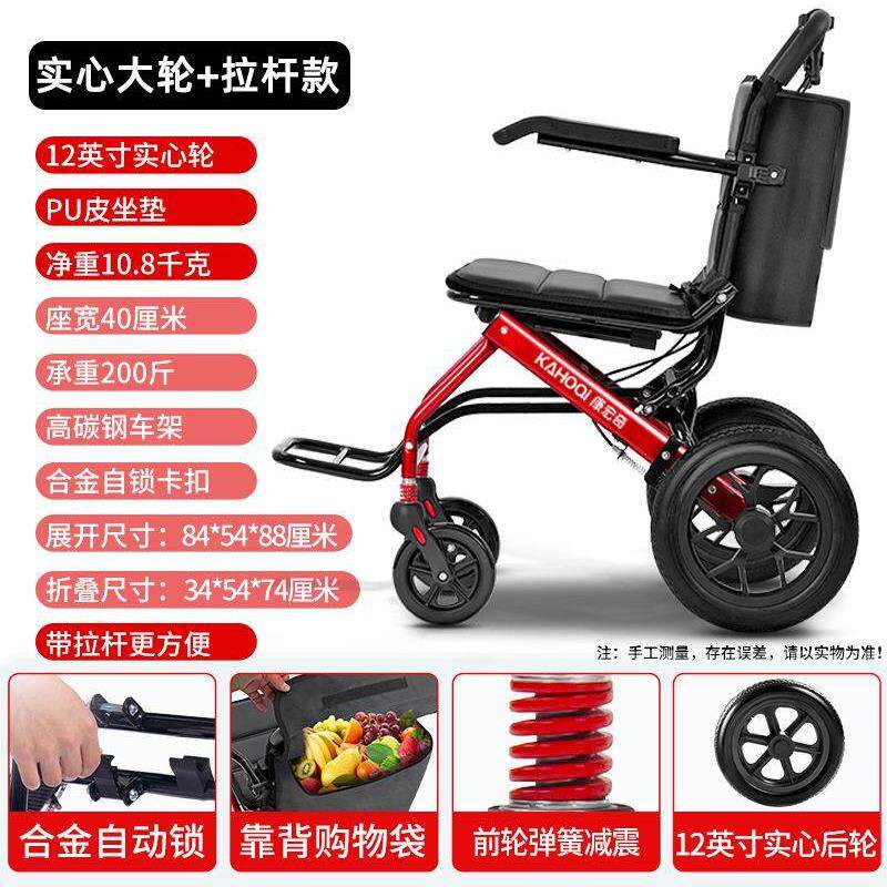 老人手动轮椅散步老年人手推代步车轻便便捷式旅行专用可折叠