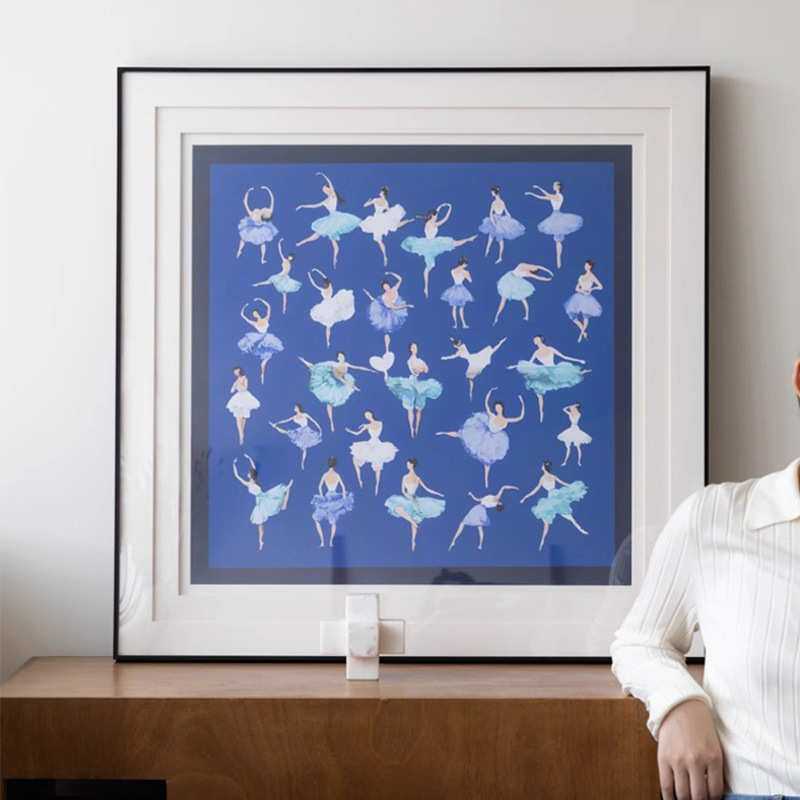 芭蕾女孩 克莱因蓝现代装饰画客厅氛围感沙发背后画卧室床头摆画
