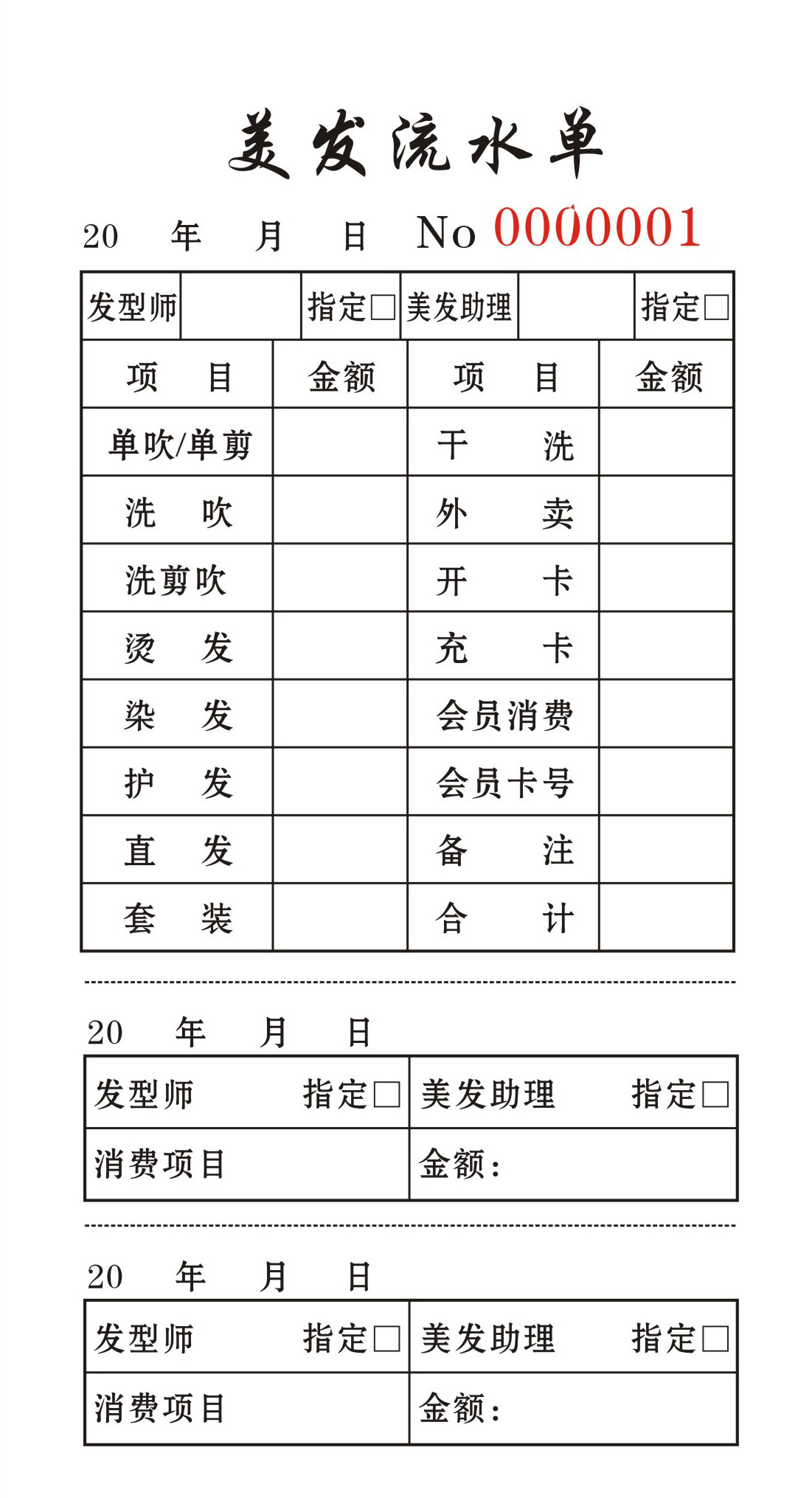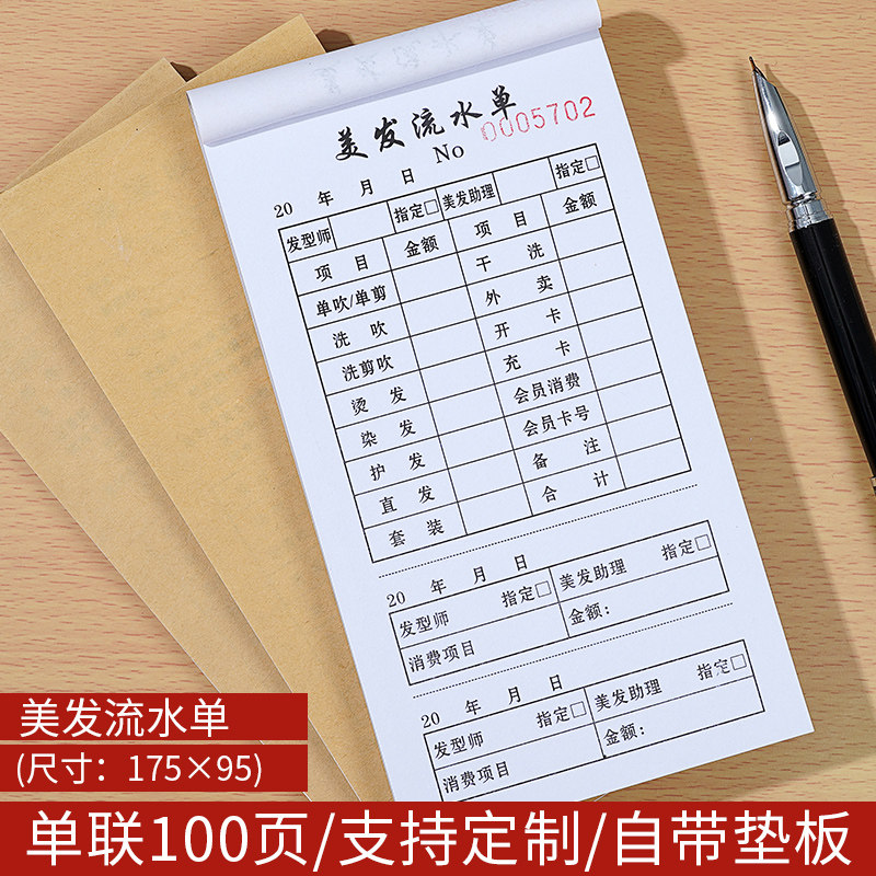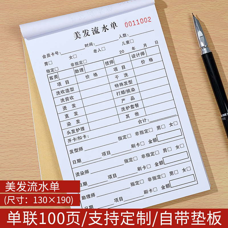 美发流水单美发店收银单订做发廊收银单美容美发流水单理发店单子流水定制定做发廊开单本美甲店美容店单据