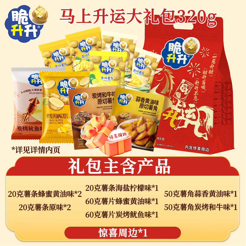新年送礼脆升升2026礼盒非膨化薯片零食大礼包年货薯条马年盒装
