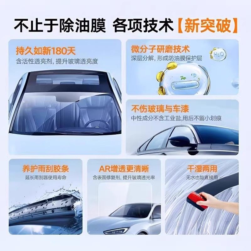 汽车玻璃油膜清洁刷前挡风后视镜防雨雾强力清洗液去油膜擦除胶剂