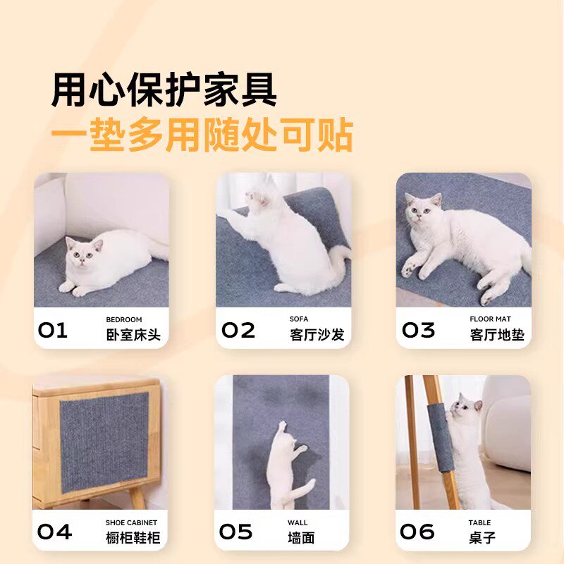 防猫抓沙发保护猫抓垫耐磨不掉屑猫爬垫立式墙贴猫抓板剑麻自粘