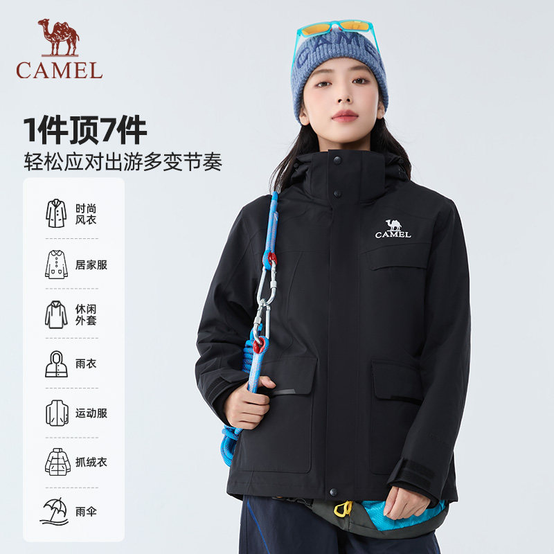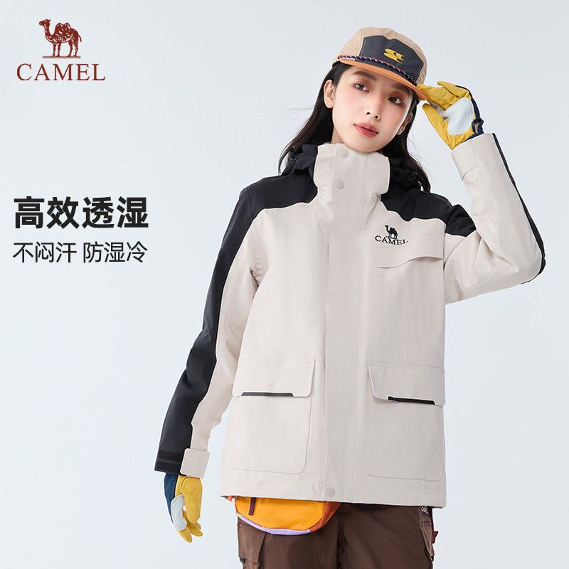 Camel骆驼户外三合一冲锋衣保暖夹克外套防风登山服露营登山滑雪