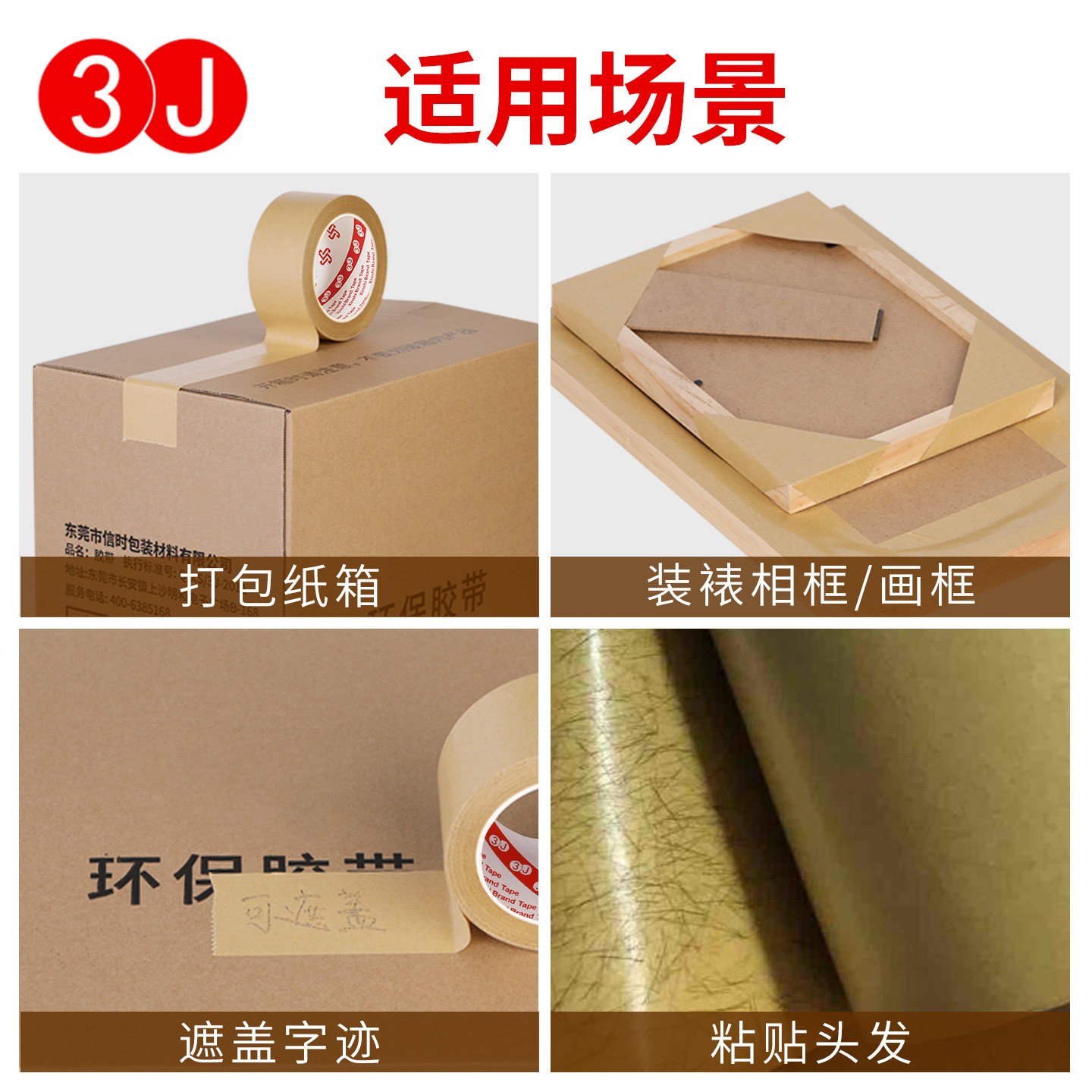 3J2033牛皮纸胶带高粘强力高粘免水牛皮纸胶带纸质手撕牛皮纸相框绘画裱画框用33米牛皮胶纸封箱免水胶带