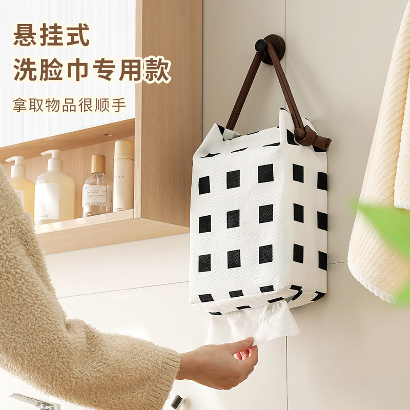 悬挂式抽纸盒大包纸巾盒收纳壁挂式厨房卫生间免打孔纸巾袋洗脸巾