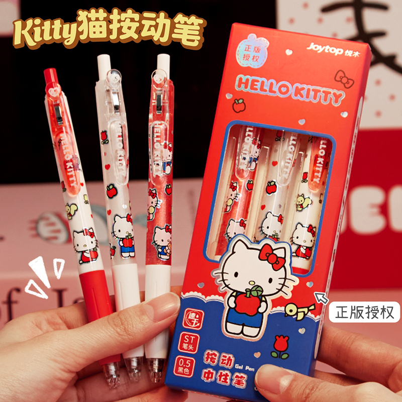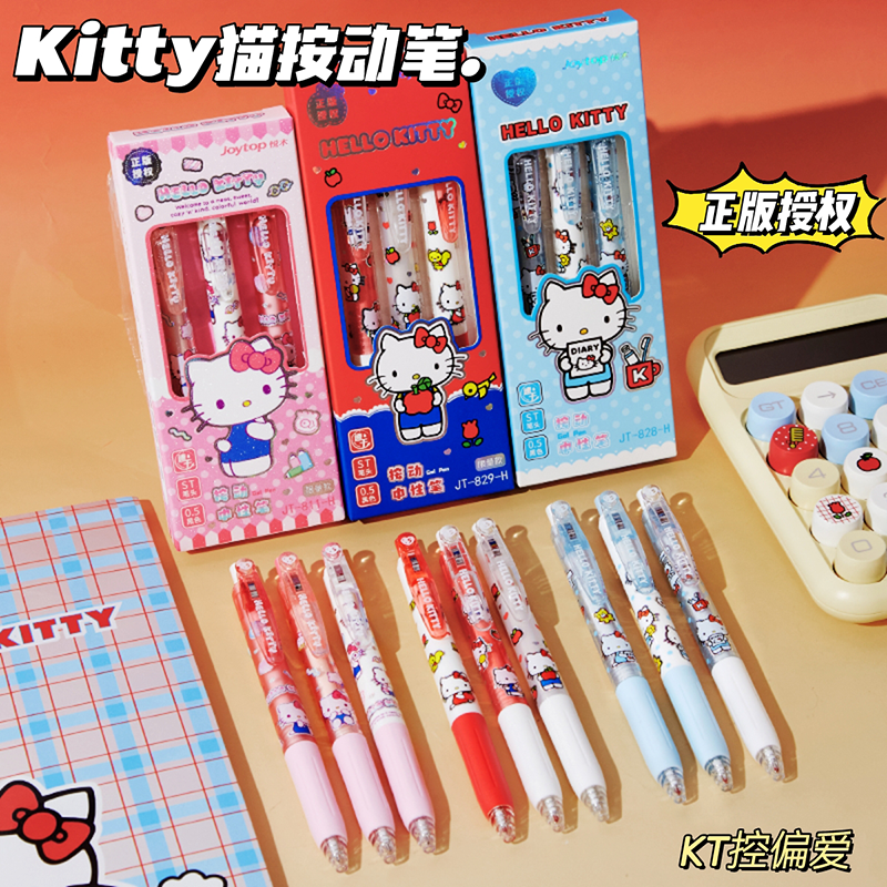 【三丽鸥正版授权】Hellokitty按动中性笔速干刷题笔小学生初中生专用黑色水笔凯蒂猫高颜值可爱圆珠笔女生款