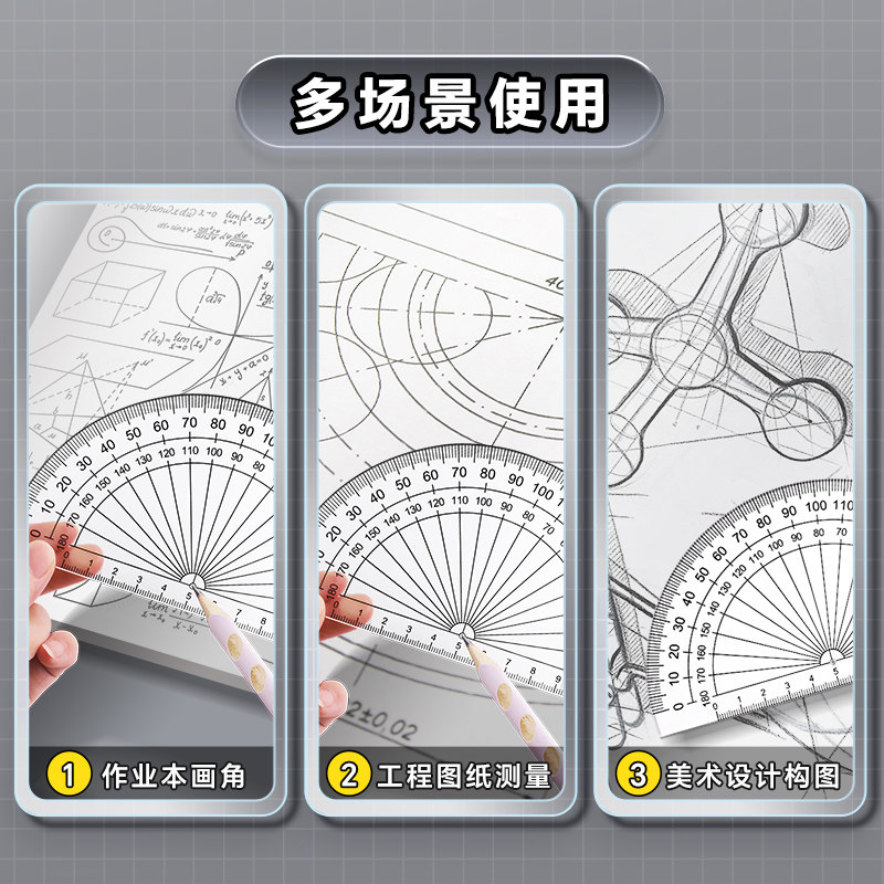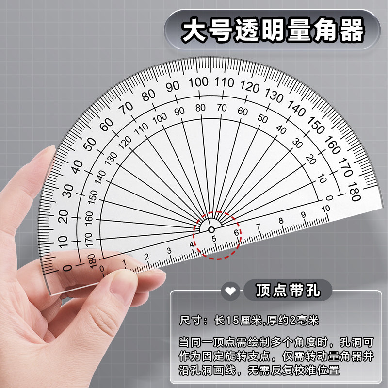 透明量角器学生用高精刻度尺划线学习测量多功能几何绘图数学文具
