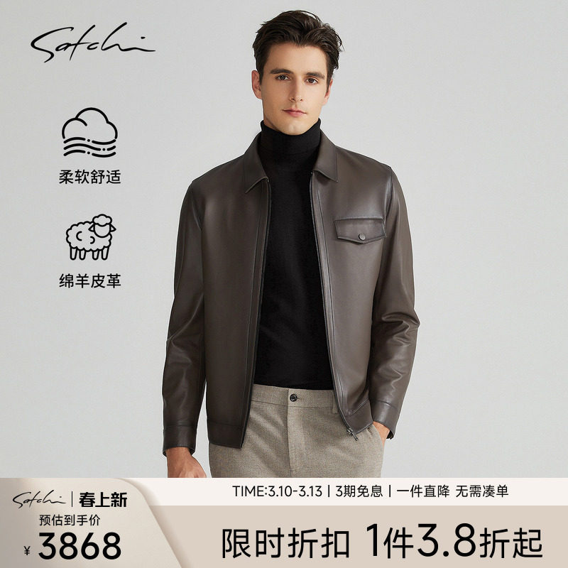 SATCHI沙驰男装男士真皮皮衣2025春季新款复古美拉德羊皮夹克外套