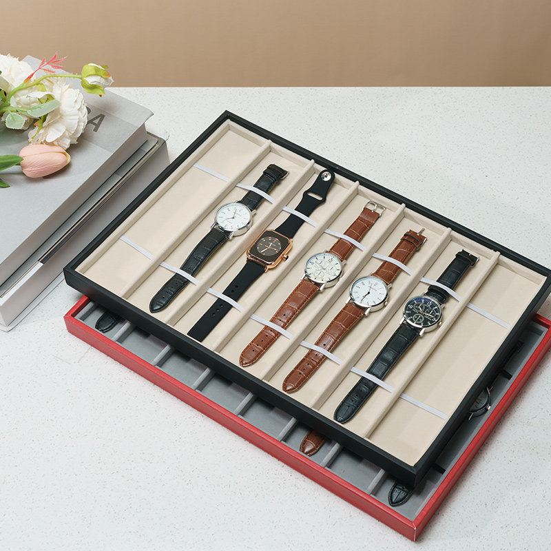 PU皮手表展示托盘绒布表带收纳盘项链手链发簪看货盘首饰道具珠宝