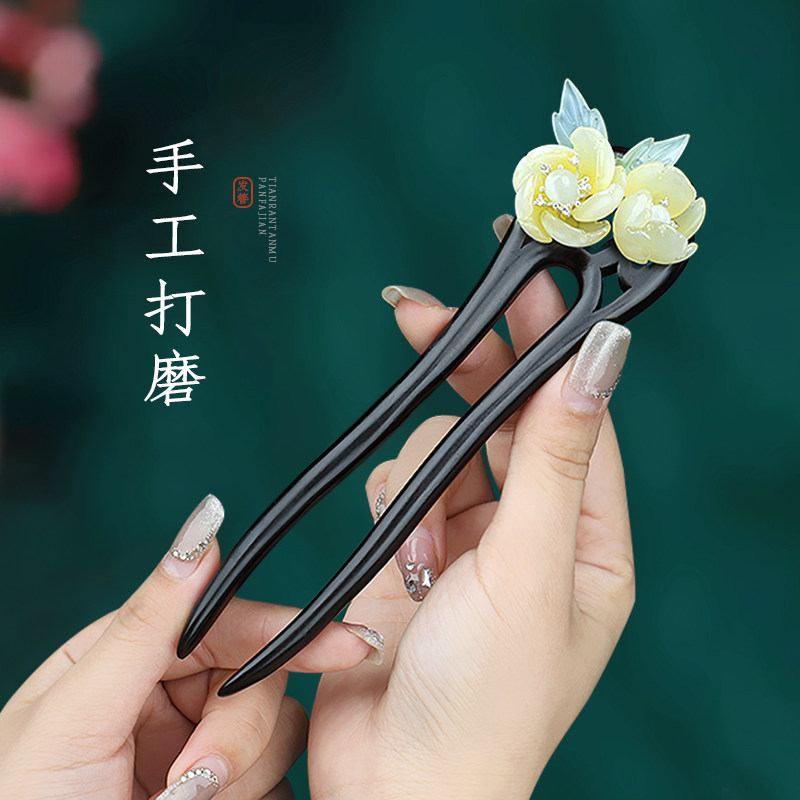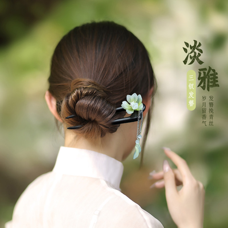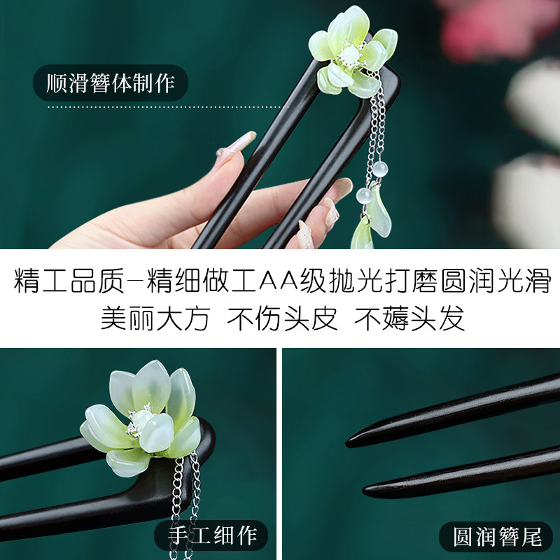 复古风流苏双钗簪子檀木吊坠发簪现代简约古风木簪高级感盘发张钗