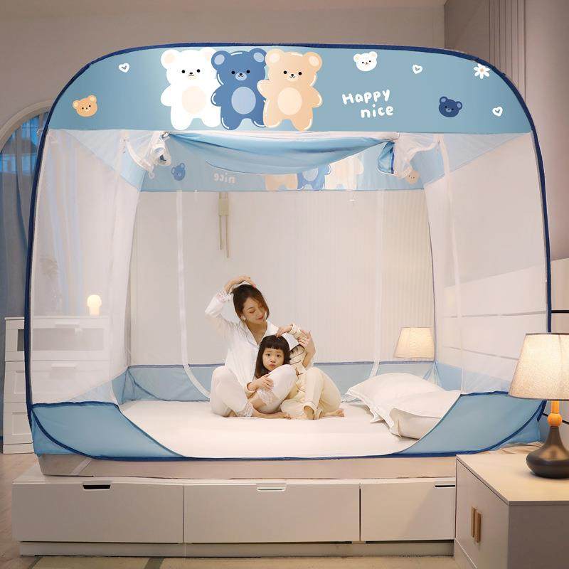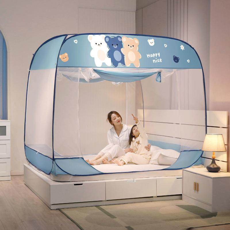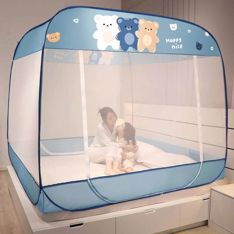 海虹 2023防尘免安装蚊帐三开防摔全封闭加密无荧光双丝帐纱 快乐