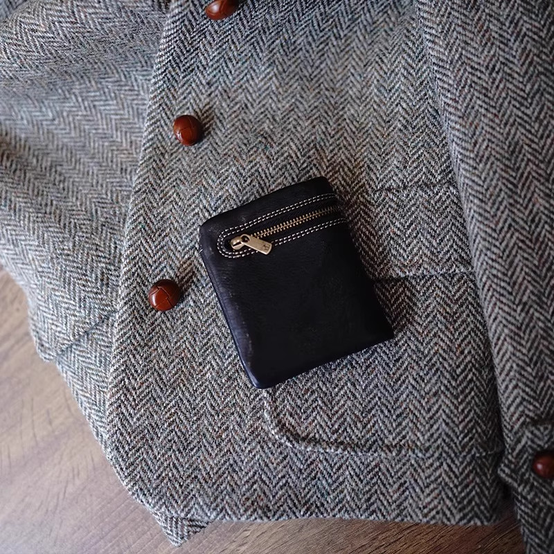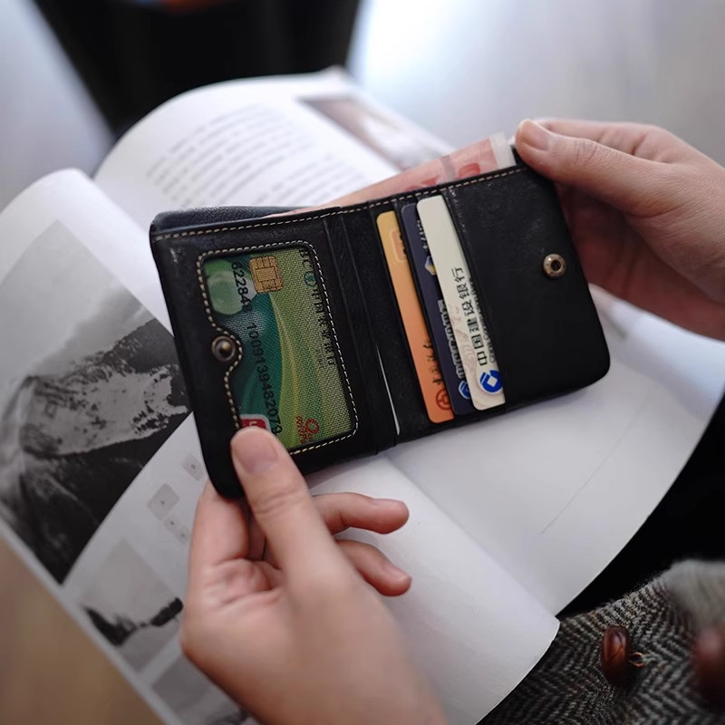 新款小众设计短款钱包柔软复古小巧植鞣真皮质感女钱夹实用皮夹子