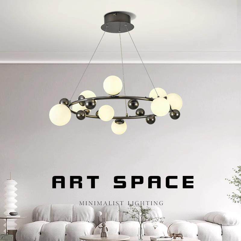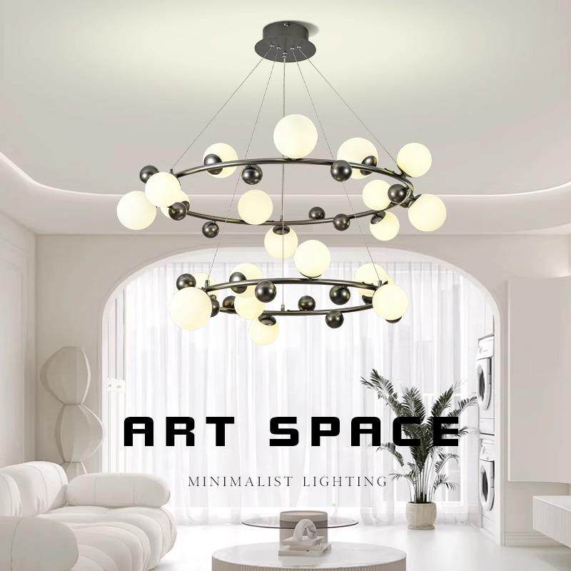 北欧客厅魔豆玻璃分子灯大厅圆圈圆环设计师灯饰餐厅长条个性吊灯