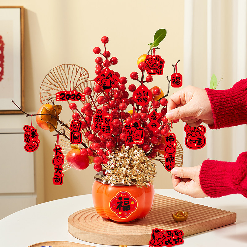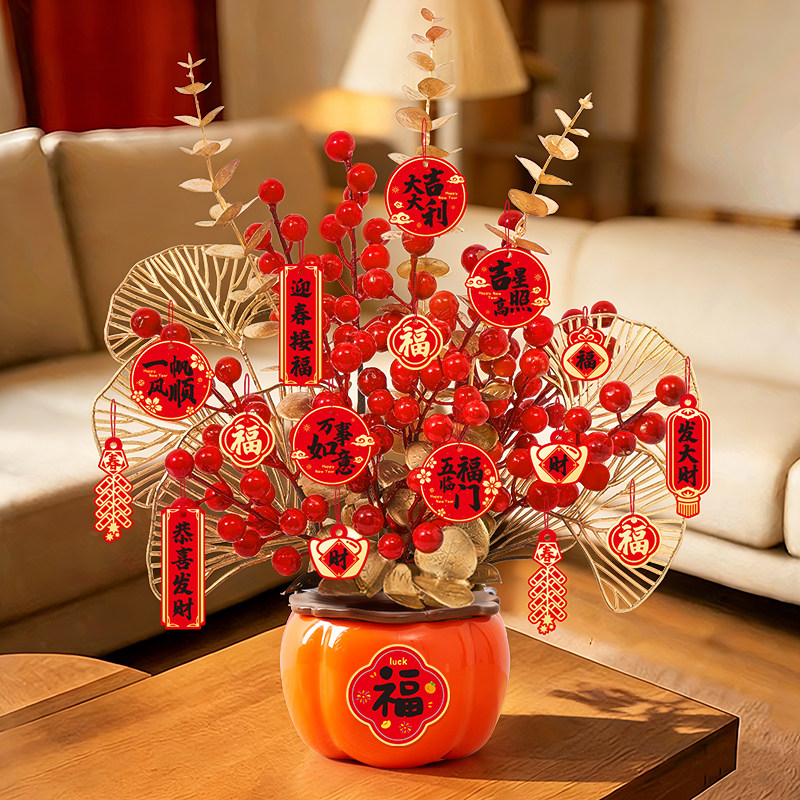 新年过年客厅装饰品发财果福桶摆件2026马年桌面春节氛围年味布置