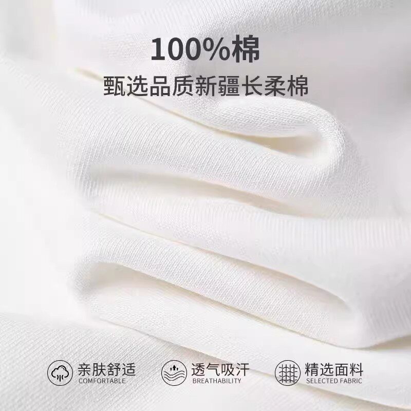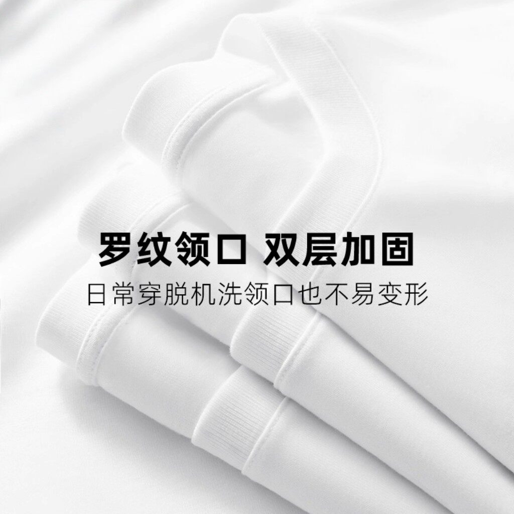 森马短袖T恤男装新款纯棉半袖情侣纯白圆领凉感白t休闲打底衫贴身
