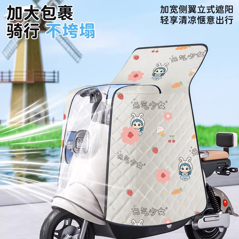 电动车挡风被夏季防晒防水遮阳罩新款摩托车电瓶车通用全包斗篷式