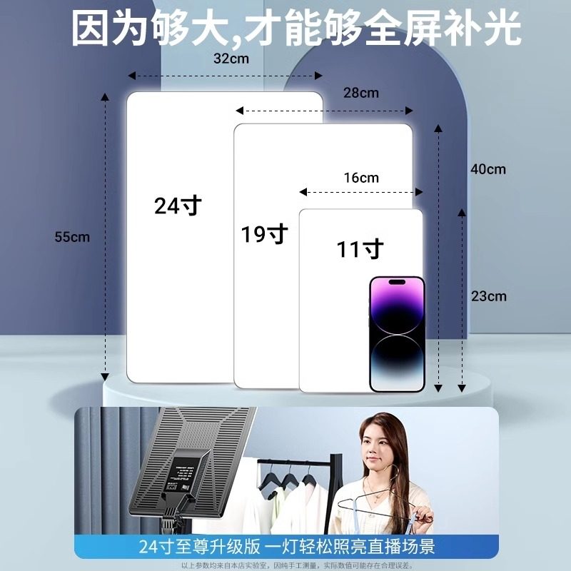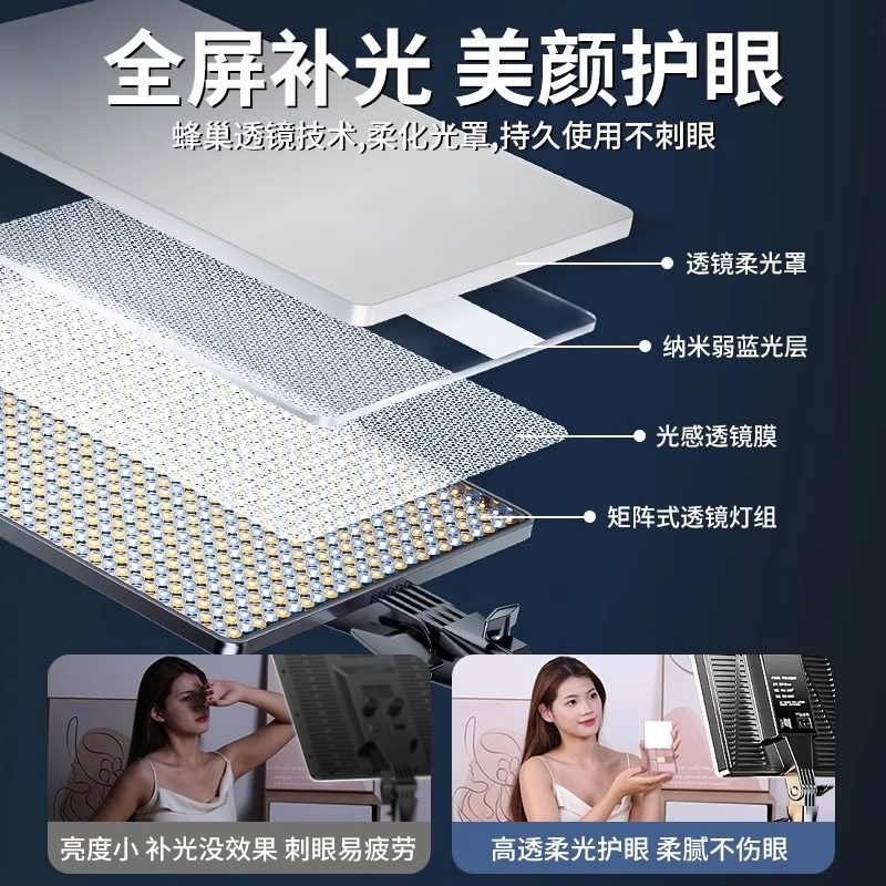 直播摄影补光灯主播专用拍摄打光拍照Led直播间专业美食灯光柔光美颜拍视频桌面珠宝室内影棚面光方形平板灯