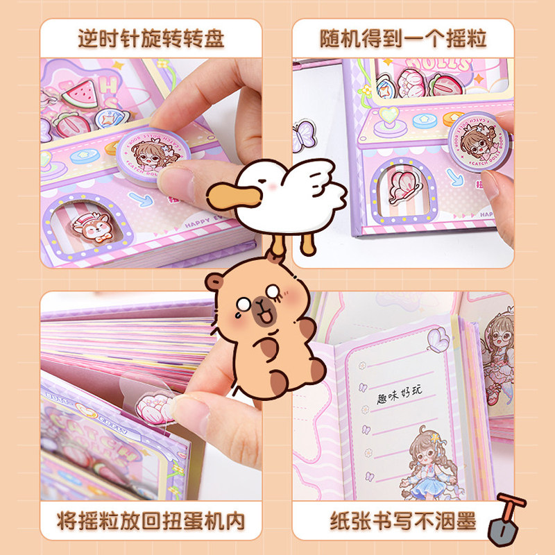 卡皮巴拉学习季鱼跃龙门励志扭蛋机口袋本高颜值卡通手帐本创意小学生随身便携小本子女生加厚日记本生日礼物