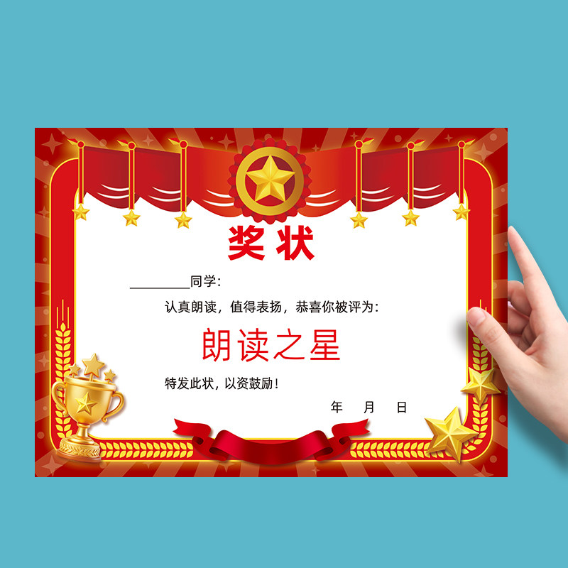 表扬小学生 中学生 可定制A4奖状纸 140克双胶纸语数英进步之星