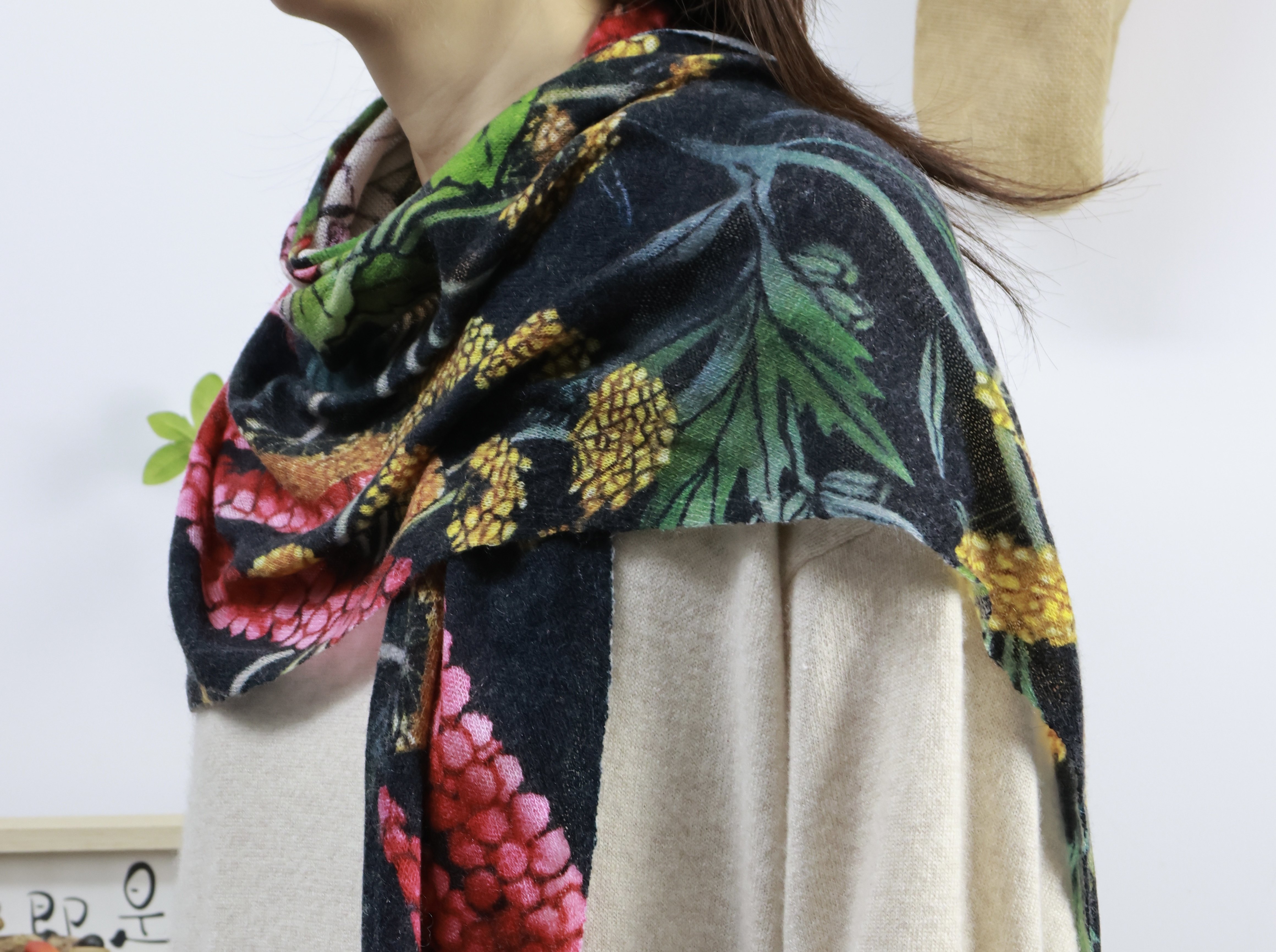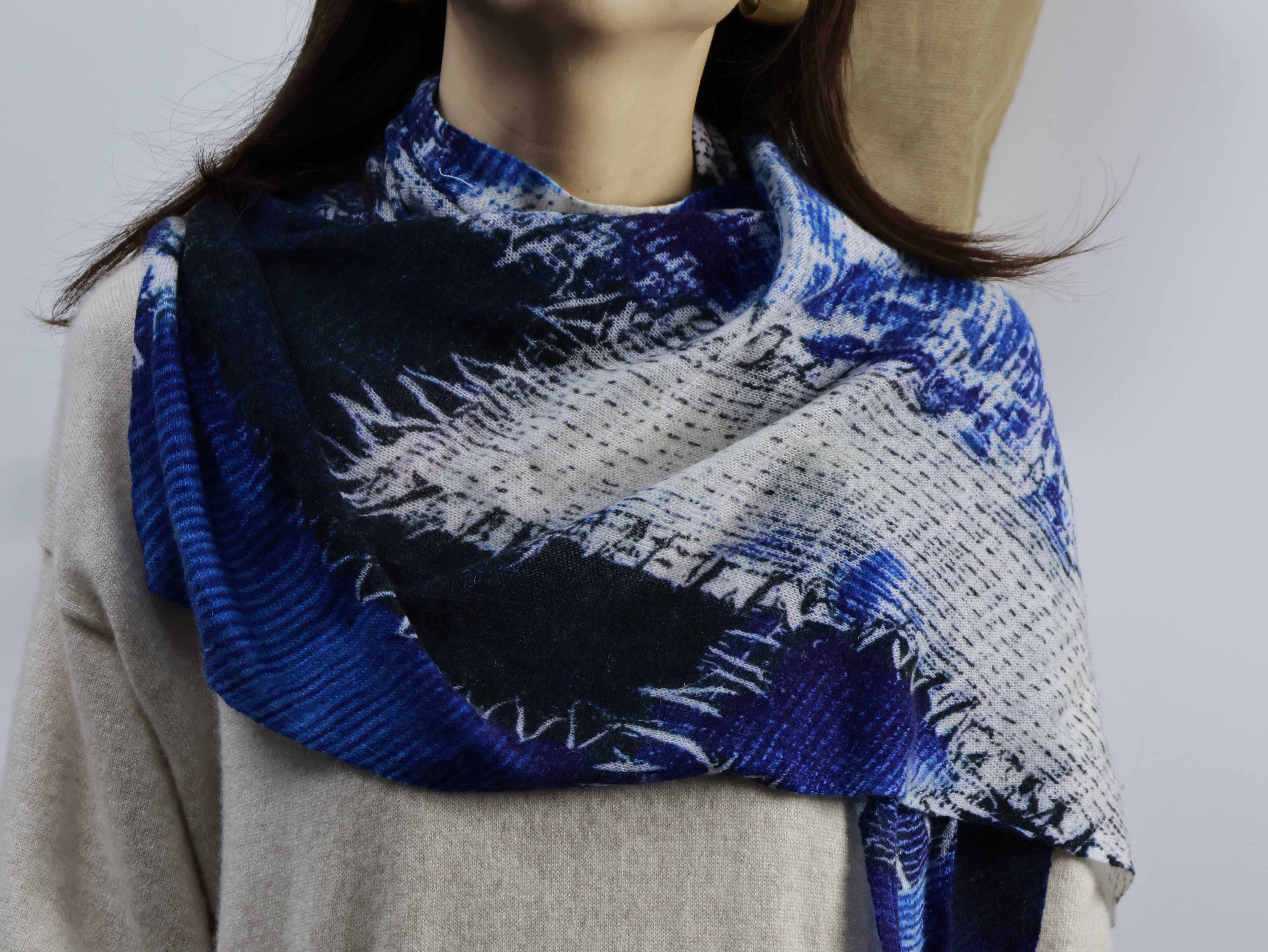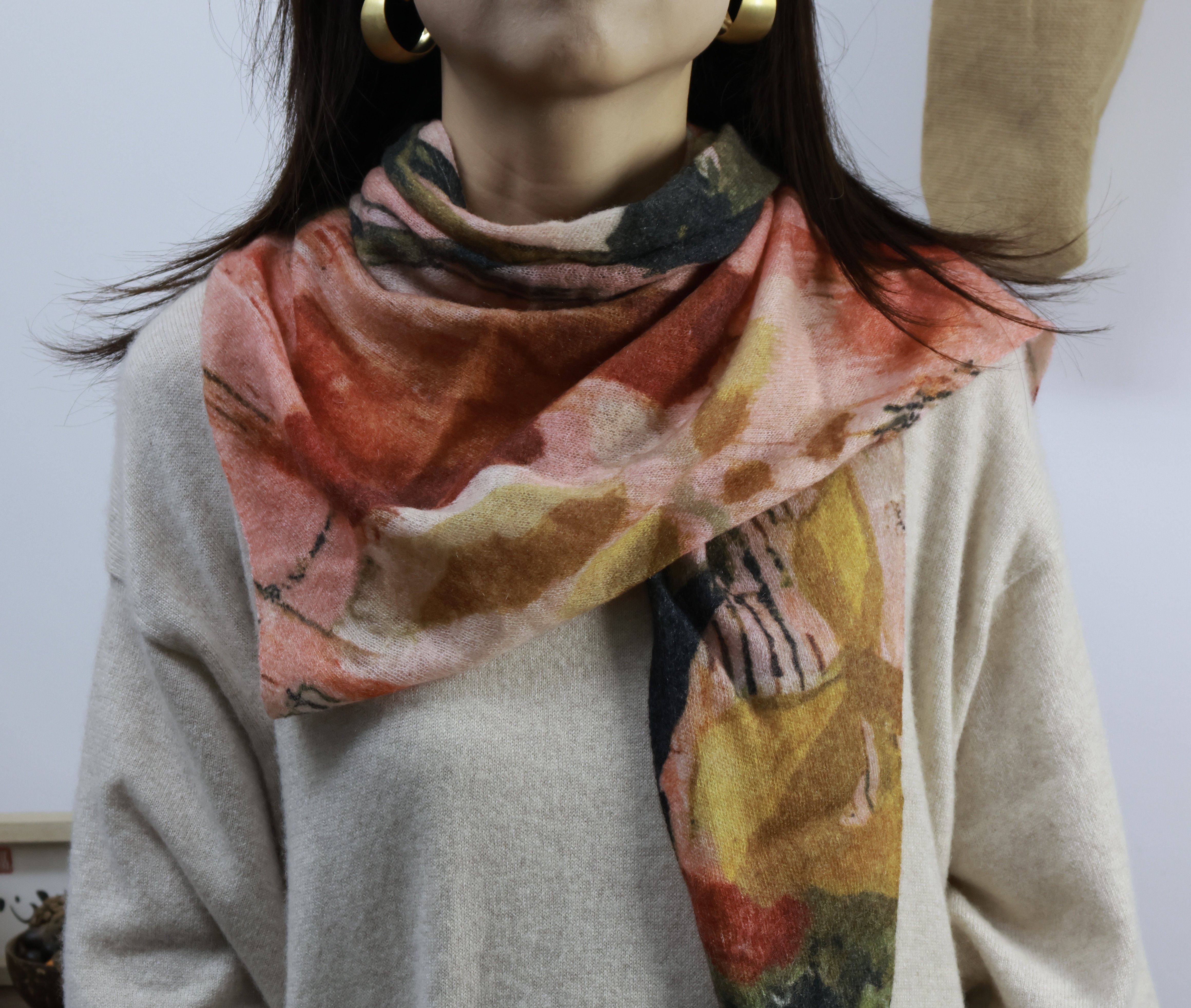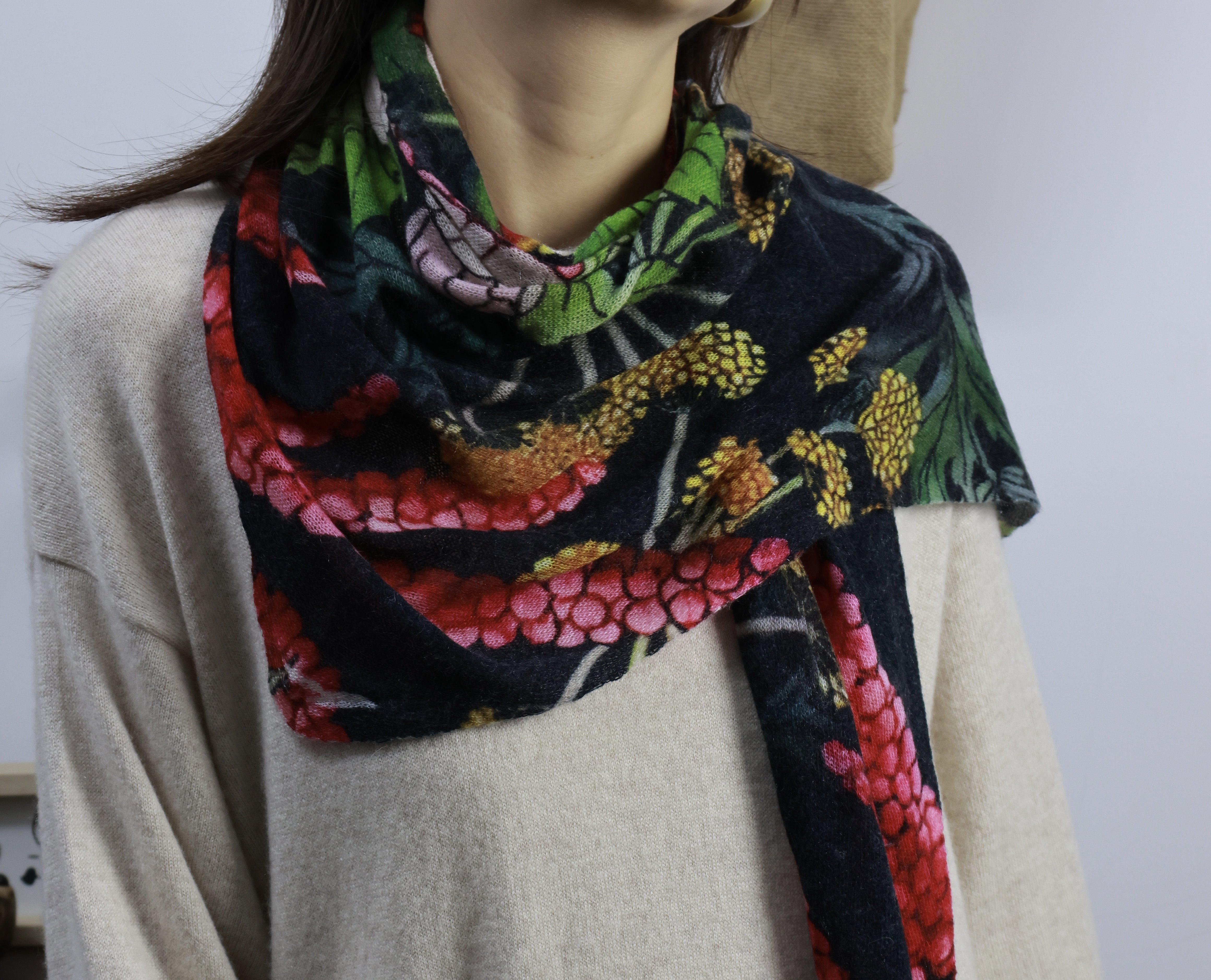 原创印花三角巾 精纺羊绒薄款印花围巾