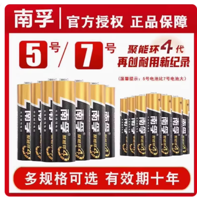 南孚电池5号7号碱性电池五号七号AA聚能环5代玩具电池遥控器鼠标干电池正品空调电视1.5V南孚官方旗舰店官网