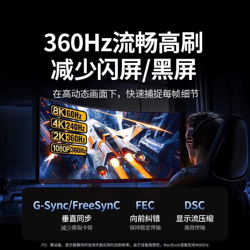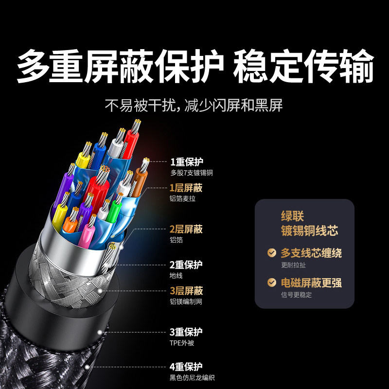 绿联Typec转DP线1.4转接1.2连接8K转换4K240Hz接头适用于华为苹果17mac/mini/雷电5/4/3笔记本usbc显示器接口
